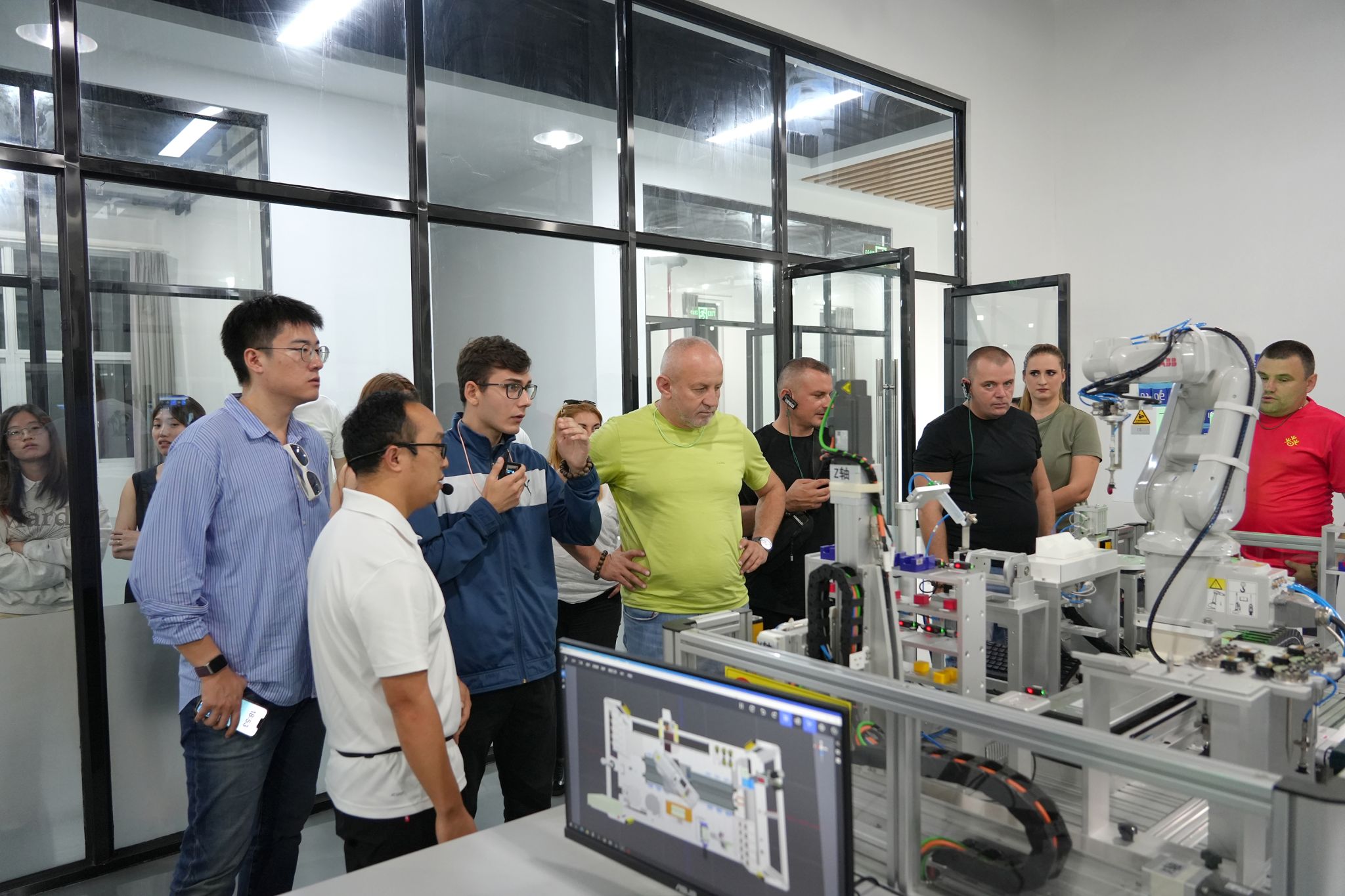 At the Robotics and Intelligent Control Training Center in Training Factory No. 4, the delegation visited demonstrations of advanced industrial robot equipment and intelligent control systems, and were deeply impressed by the college’s cutting-edge teaching facilities and applied talent training capacity in the field of intelligent manufacturing.