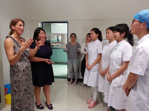In the afternoon of the same day, Catherine Williams and her delegation of five people from the School of Public Health at Swansea University visited the Nursing Department to deliver a presentation and toured the nursing skills training laboratory.