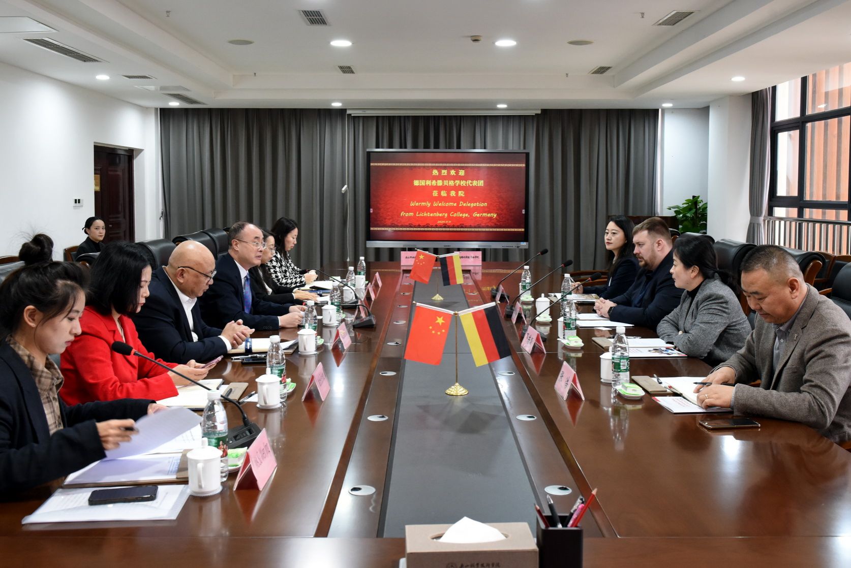 On November 11, 2024, a delegation from German Lichtenberg College, led by President Amadeus Werner, visited Leshan Vocational and Technical College. They held an exchange meeting in conference room 2001 of the Academic Exchange Center and signed a Sino - German nursing education 3 + 0 cooperative education agreement.