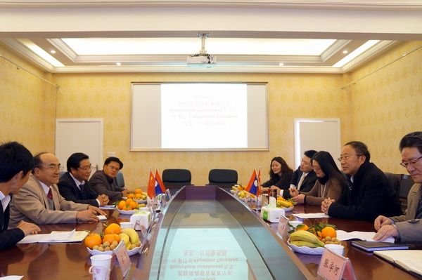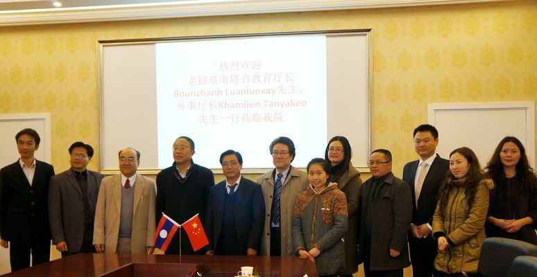 On February 18th, 2014, the Provincial Director of Education, Bounkong Luanglasy, and the Provincial Director of Foreign Affairs, Kongphet Thongyo, from Luang Namtha, Laos, along with the Director of the Education Office of Luang Namtha Province, Thongchanh Aphachanh, visited our college. They were accompanied by Mr. Liao Fei, Deputy Director of the Office International Cooperation and Exchange at Leshan Normal University. Attending the meeting were Dean Xue Jianping, Deputy Secretary of the College Party Committee Chen Zhihai, Director of the Office of International Cooperation and Exchange Huang Xiaoli, and leaders from relevant departments and faculties.