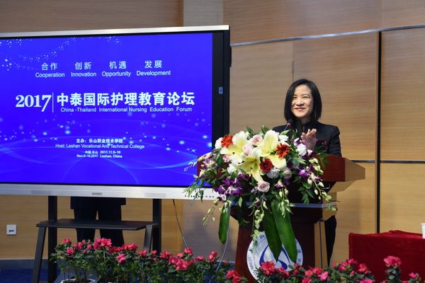 At 8:30 a.m. on November 9, 2017, accompanied by cheerful duets of Chinese and Thai folk songs, the first China-Thailand International Nursing Education Forum opened grandly in the college's academic lecture hall. Leaders in attendance included Peng Yi, Deputy Director of the Sichuan Provincial Department of Education; Liao Fei, Director of the International Exchange and Cooperation Office of the Sichuan Provincial Department of Education; Yang Wenpei, Deputy Secretary-General of the Leshan Municipal People's Government; Chen Kun, Director of the Leshan Municipal Education Bureau; Tan Hui, President of the Leshan Association for International Friendship; Zhou Yi, Deputy Director of the Leshan Health and Family Planning Commission; Anchalee, Vice President Representative of the Thai Red Cross College of Nursing; representatives from the Thai Central Nursing Alliance II; Yaowadee, President of the Queen Mother Phutthabat College of Nursing; Ratcow, President of the German Böllinger Nursing College; and Jian Lu, Secretary of the Party Committee of Leshan Vocational and Technical College. The opening ceremony was presided over by Chen Zhihai, Deputy Party Secretary and Discipline Inspection Commission Secretary of the college.