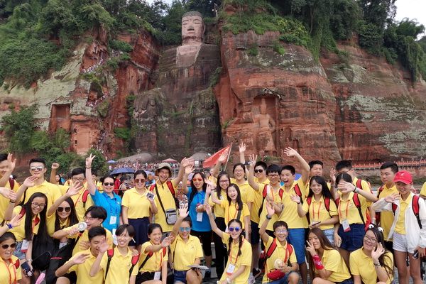 With birds singing and cicadas chirping, and under the backdrop of blue skies and white clouds, the participants of the 2019 "China Roots - Seeking Journey" Summer Camp in Leshan, Sichuan, set off from the Academic Exchange Center of Leshan Vocational and Technical College, heading to their first destination for sightseeing and learning: the Leshan Giant Buddha Scenic Area. On the afternoon of August 4, 134 Chinese - descendant teenagers gathered at the Baxian Cave Dock under the guidance of their college counselors, eagerly anticipating their first sight of the world's largest Buddha statue—the Leshan Giant Buddha.