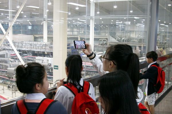 As a light rain fell, four buses carrying the participants arrived at a beautiful but slightly "mysterious" place—the Nongfu Spring factory in E'mei Mountain. After gathering, the participants entered the factory in small groups to tour the production workshop. The production line of Nongfu Spring is highly modernized. Bottled mineral water and other products continuously moved along the line, with only a few workers on duty at key positions. Many tasks, such as packing and stacking, were completed by machines, which attracted the participants to stop and take photos from time to time.
