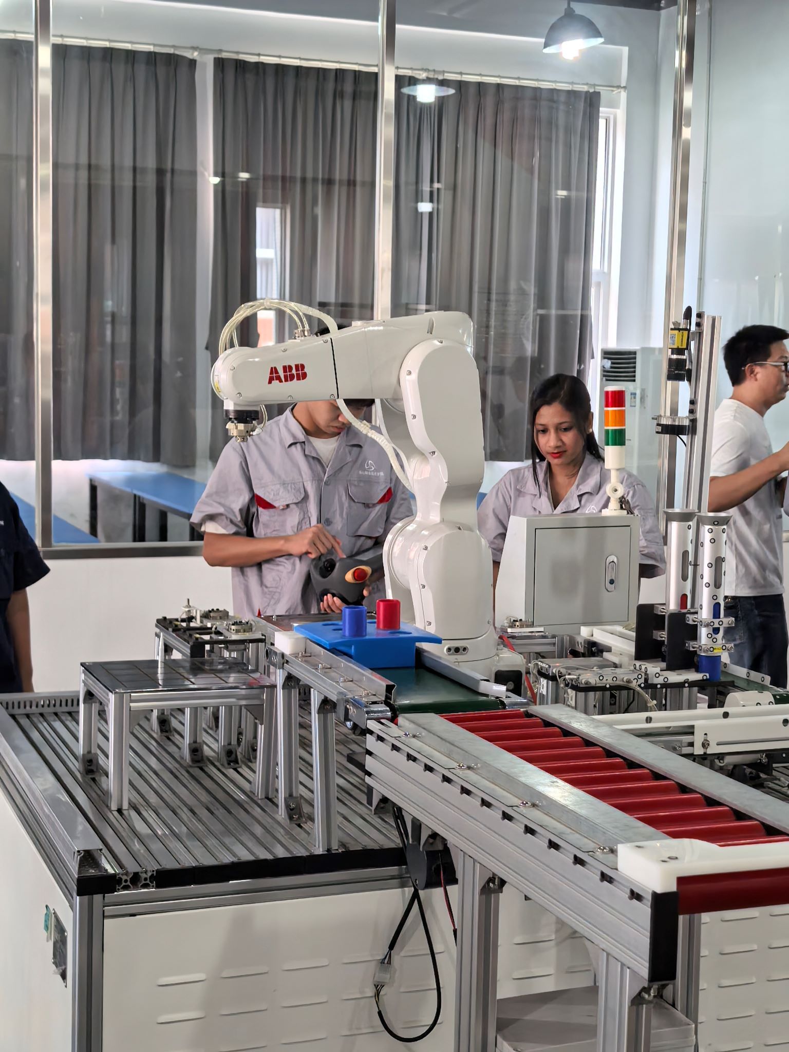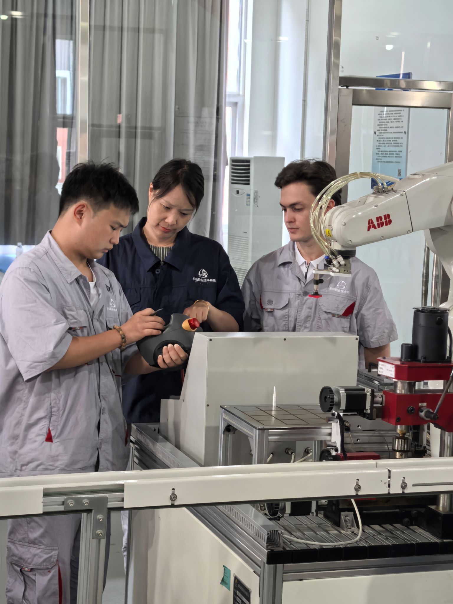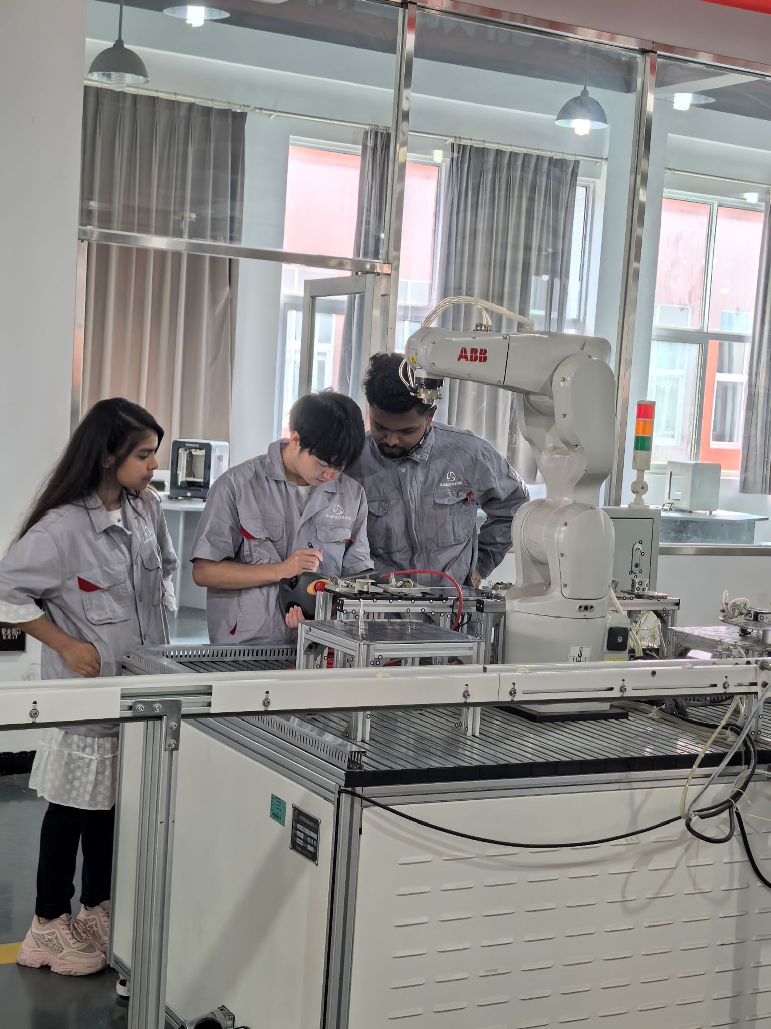 Under the guidance of professional teachers, the international students personally engaged in the practical operation of industrial robots. They worked in groups, using programming to control the robots to complete various tasks such as handling, assembly, and inspection.