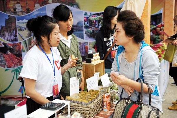In the Jiazhou Scroll exhibition area, it was easy to spot clusters of exhibition booths from Southeast Asian countries, with numerous merchants from Thailand, Laos, Vietnam, and other nations. Exhibitors speaking Thai, Lao, and other languages added an international flair to the expo, but also made language translation a key issue. Leshan Vocational and Technical College, in its efforts to enhance its educational capabilities and student quality, has long strengthened cooperation and exchanges with international institutions and attracted a large number of Southeast Asian international students from Laos and Thailand. These students, ranging from exchange students to degree-seeking students and from freshmen to seniors, are diligent, honest, and resilient. Some have been studying and living in Leshan for 2 or 3 years and can speak fluent Mandarin, while a few have even mastered the local Leshan dialect. The exhibitors in the Southeast Asian section were in urgent need of such translation talent. Similarly, the young people also needed opportunities to serve society, improve their abilities, and challenge themselves. Therefore, the international students from Leshan Vocational and Technical College gladly accepted this challenge. Through their cooperation with the expo organizing committee, exhibitors, and various participants, the students gained valuable experience, making the expo more lively and orderly, like a beautiful flower blooming in the golden autumn.