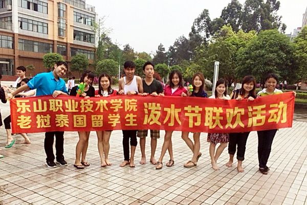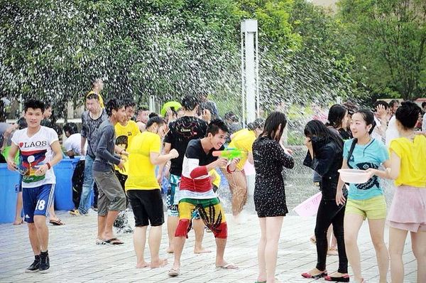 On April 14th, 2014, 38 international students from Laos and Thailand at our college, led by their teachers and armed with buckets and basins, gathered at the Osmanthus Square of Leshan Normal University to celebrate their own festival—the Water-Splashing Festival—along with other international students in Leshan.
