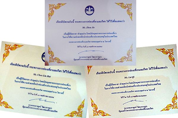On November 18th, 2015, the Thai Ministry of Tourism and Sports held a commendation ceremony for volunteers of the August 17th Bangkok explosion at The Twin Towers Hotel in Bangkok. Three exchange students from our college, who were studying at the Thai Red Cross Nursing College, were honored at the event. During the ceremony, Thai Minister of Tourism and Sports Kobkarn Sakulrat addressed the gathering, outlining the Thai government’s response following the explosion. She expressed her gratitude to all volunteers for their assistance to the Thai government and the foreign tourists injured in the blast, and personally presented commendation certificates to our college students.