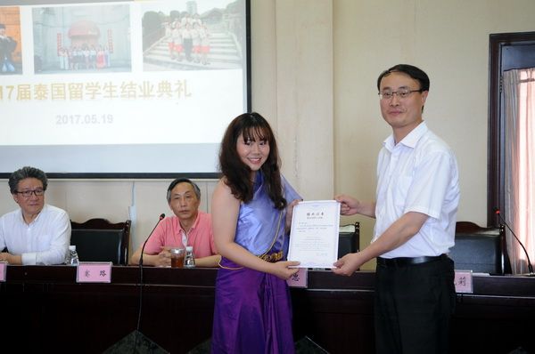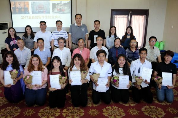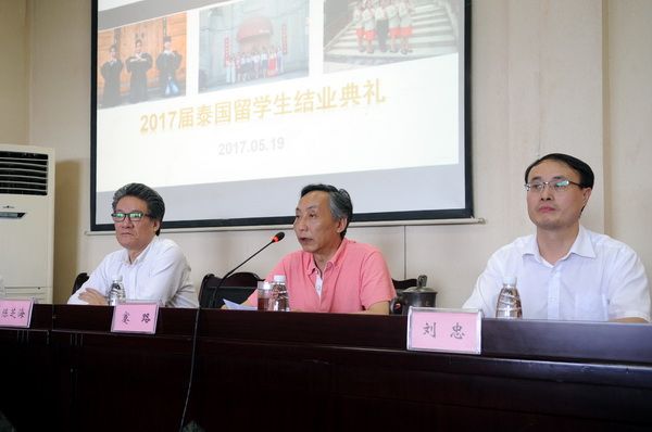 On the afternoon of May 19, 2017, the graduation ceremony for the 2017 class of Thai international students was held in the conference room on the sixth floor of the college. In attendance were Secretary Jian Lu of the college’s Party Committee, President Liu Zhong, and Deputy Party Secretary and Discipline Inspection Commission Secretary Chen Zhihai. Everyone gathered joyfully to celebrate the students’ successful completion of their studies and their return to their home country.