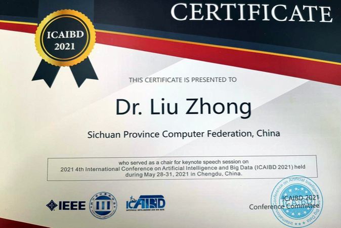 From May 28 to 31, 2021, the 4th International Conference on Artificial Intelligence and Big Data was held in Chengdu. Professor Liu Zhong, President of the college, was invited to chair the keynote speeches of the conference. Attending the conference were Academician Zhang Jingzhong of the Chinese Academy of Sciences, Director Wang Xiaoyu of the Chengdu Institute of Computer Science of the Chinese Academy of Sciences and Chairman of the Sichuan Computer Society, and Minister Liu Xianrang of the Department of Academic Societies of the Sichuan Provincial Association for Science and Technology. Renowned scholars such as Professor Jin Hai from Huazhong University of Science and Technology in China, Professor Yonghui Li from the University of Sydney in Australia, Professor Anu Gokhale from the University of Illinois in the United States, and Professor Fumihiko Ino from Osaka University in Japan delivered invited or online reports. The conference reports covered many cutting - edge fields, including artificial intelligence and mathematical computation, machine vision and image processing, advanced information theory and neural network technology, and big data science and engineering.