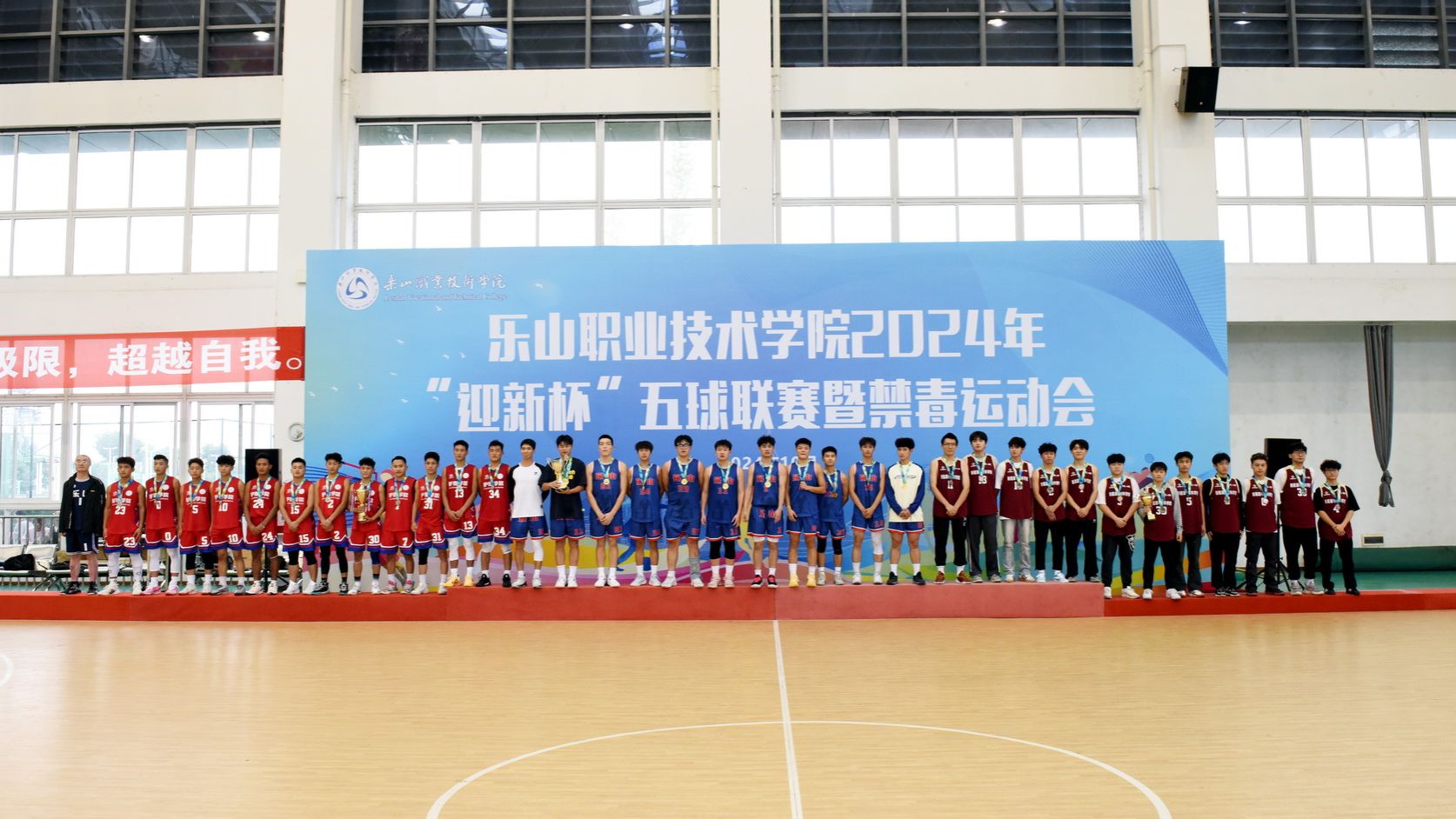 On the afternoon of October 30, 2024, the award ceremony for Leshan Vocational and Technical College's 2024 "Welcome Freshmen Cup" Multi - Ball League and Anti - Drug Sports Meet was held in the gymnasium. Cheng Dingbin, Secretary of the School's Party Committee, attended and announced the end of the sports meet.