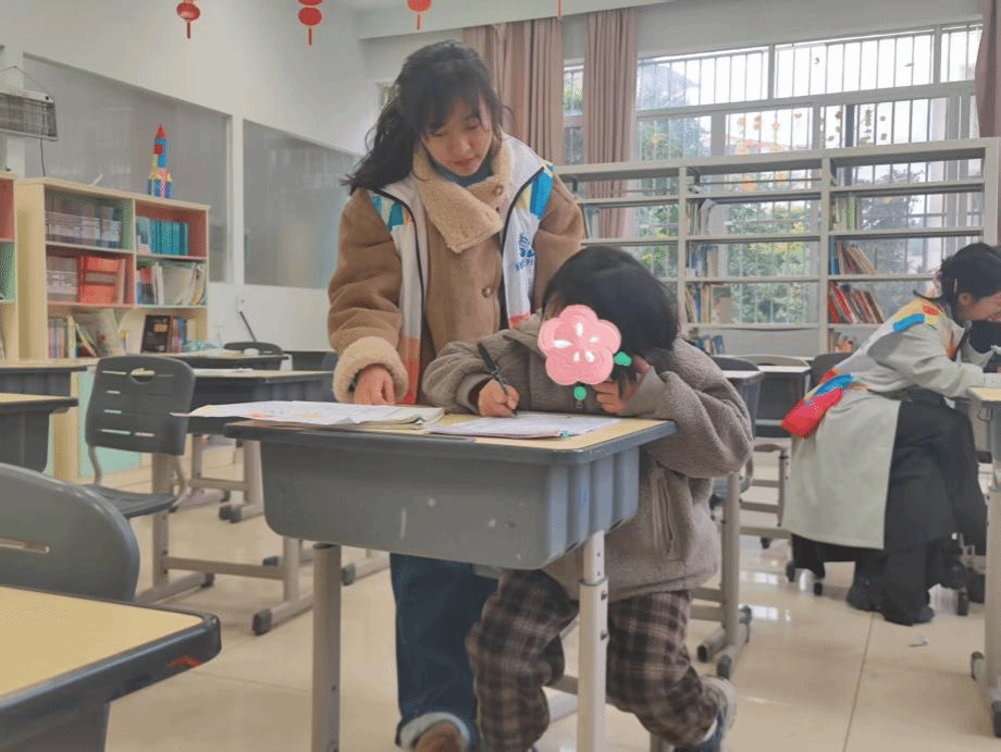 1月2日,我院英语教师傅琬益利用元旦假期,前往市儿童福利院开展专业英语专项培训活动,为院内五名中小学生提供了为期一天的一对一英语口语、写作专项培训及学习方法指导。傅老师针对几名孩子的不同学习情况设计了差异化的教学内容。对于四名小学生,她用打节拍的游戏方式,提高学生对英语词句节拍和韵律的感知,并纠正学生的发音问题和单词书写问题;而对于初一学生,则针对学生的知识漏洞,侧重讲解了英语代词的用法和写作技巧。