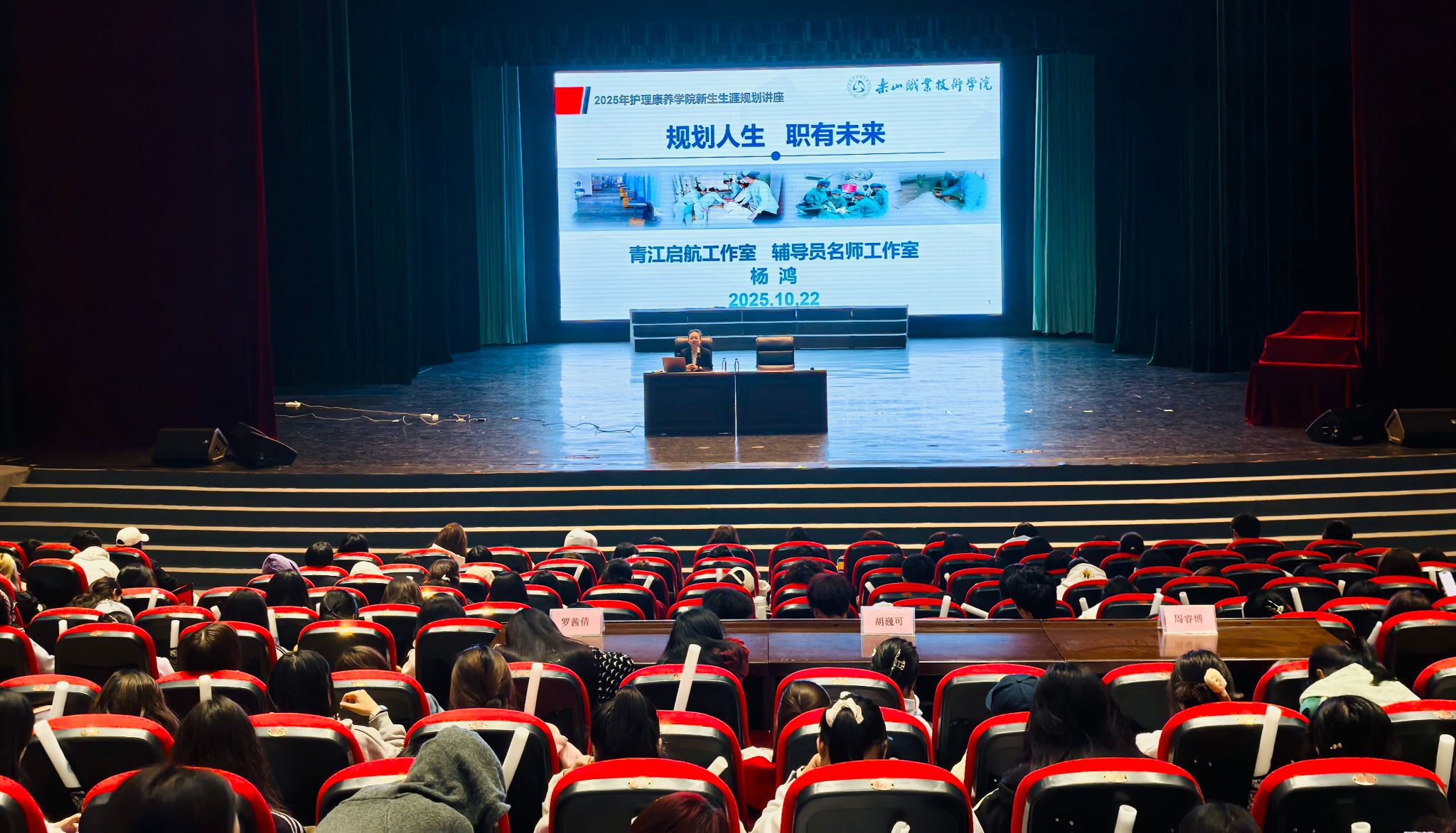 2025年10月22日,sunbet申搏官方网站护理康养学院在学院礼堂开展以“规划人生,职有未来”为主题的2025级新生职业生涯规划讲座。本次讲座由申搏官网“青江启航”省级职业生涯咨询特色工作室负责人杨鸿老师主讲,旨在引导新生科学规划大学生活,明确职业方向,提升就业竞争力。