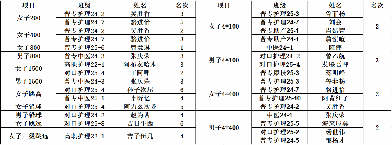本次运动会,我院运动员们奋勇争先、捷报频传,是学院坚持五育并举的生动体现。未来,护理康养学院将继续弘扬拼搏精神,以赛促练、以体育人,培养更多德智体美劳全面发展的高素质康养护理人才。