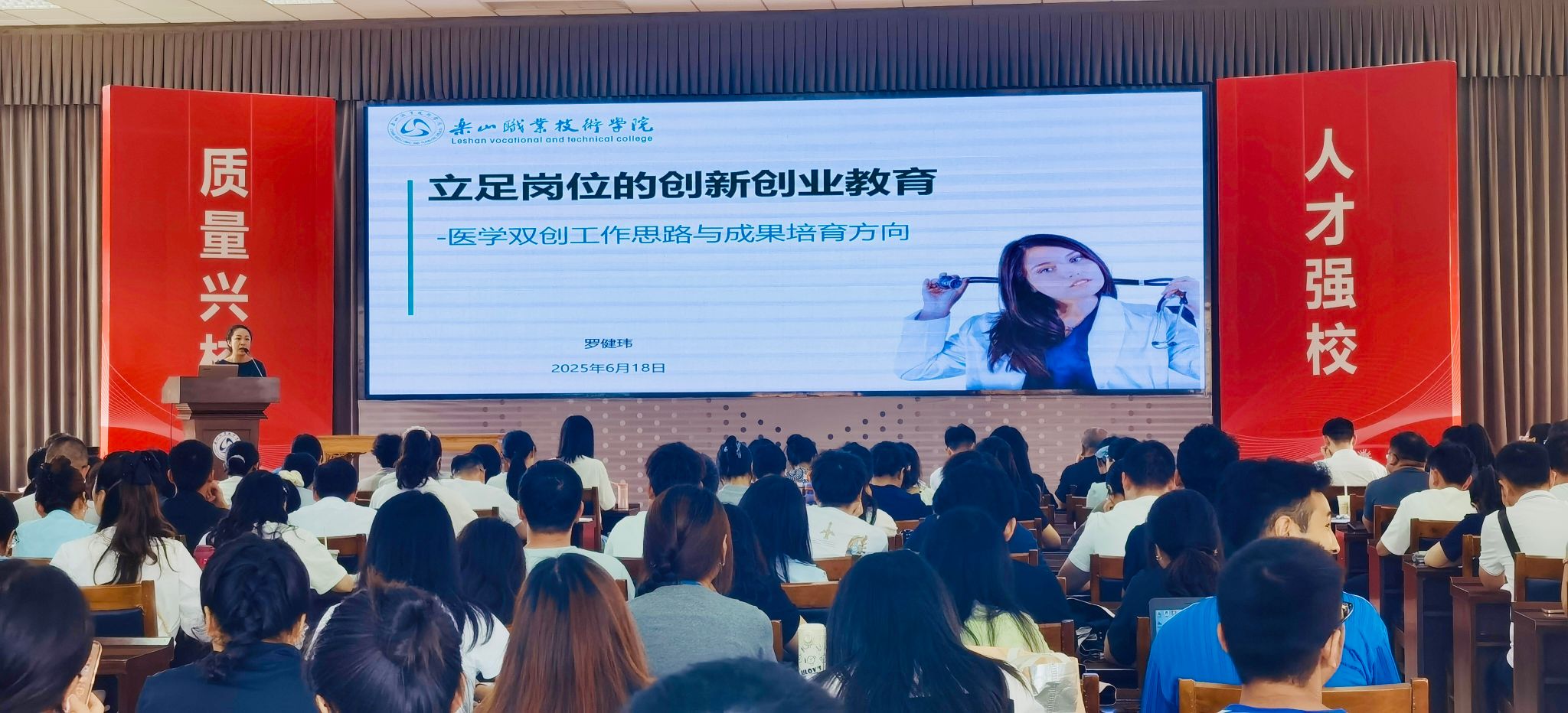 6月18日,系列培训的首期活动在学术交流中心3004举行。全校新进教师、教研室主任及护理康养学院全体教职员工参加培训。教务处陈晓露处长出席并致辞。她殷切希望全校教师坚守育人初心,牢记立德树人根本任务;深耕专业领域,锤炼教学内功,提升课堂实效;把握职教脉搏,探索产教融合、工学结合新路径,为区域经济建设发展培养高素质技能人才。