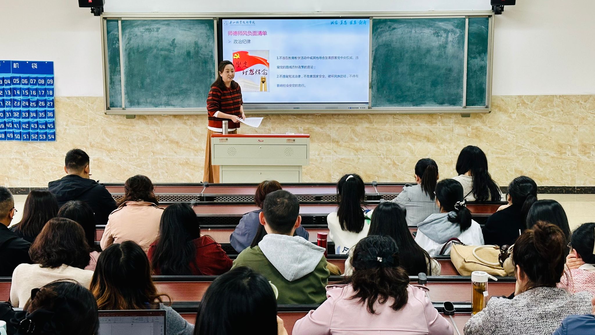 为深入贯彻落实新时代教师队伍建设要求,进一步提升教师思想政治素质和职业道德水平,2025年10月22日下午,sunbet申搏官方网站护理康养学院组织全体教职工在2C302开展了师德师风专题学习培训。本次培训围绕学校近期印发的《sunbet申搏官方网站教师师德失范行为处理办法》(乐职院通〔2025〕63号)和《sunbet申搏官方网站教师师德评价考核办法》(乐职院通〔2025〕64号)展开,旨在引导教师严守职业底线,争做“四有”好老师。
