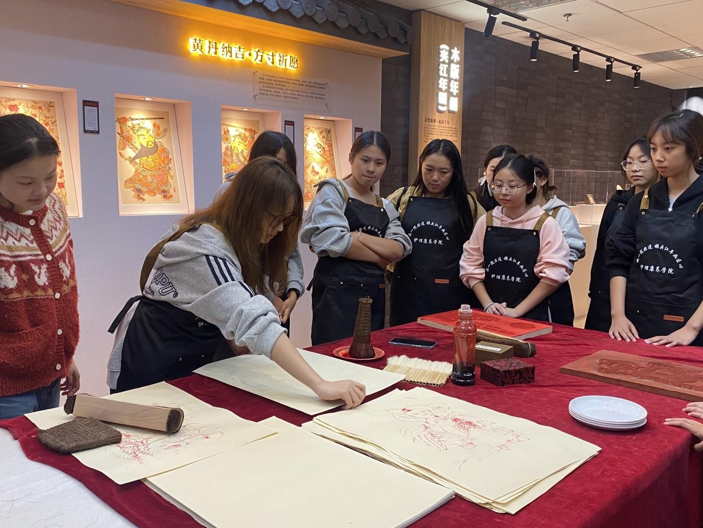 2025年10月20日,sunbet申搏官方网站非遗馆内墨香氤氲、色彩斑斓,护理康养学院“一院一非遗——走进夹江年画”特色活动温馨启幕。30名学子怀揣对中华优秀传统文化的热忱与敬畏,沉浸式邂逅国家级非物质文化遗产的独特魅力,在指尖流转的技艺与文脉中,完成了一场深度传承非遗文化的匠心之旅。