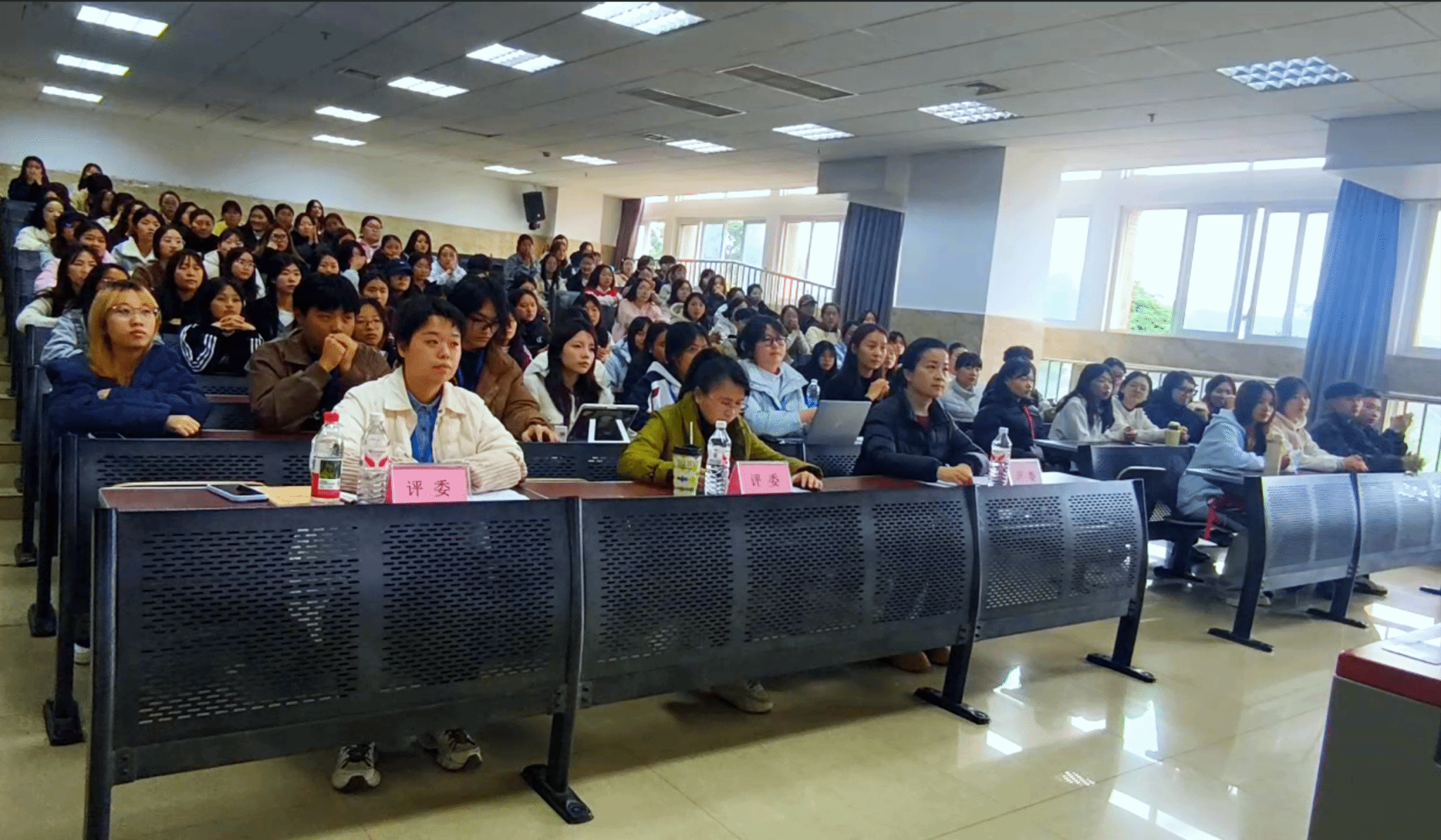 决赛前,学院团委学生会学习部精心组织赛前培训与现场彩排,从演讲技巧、时间把控到设备配合给予全方位指导,助力选手以最佳状态应战。决赛当日,二百余位学生代表齐聚现场,座无虚席、气氛热烈。15组选手依次登台,结合专业知识深入浅出解析防艾要点,通过情景剧、创意解说等多元形式传递健康理念。选手们PPT文稿图文并茂、言辞表达真挚恳切,既有对医学常识的精准阐释,也有对弱势群体的深情关怀,每一场展示都博得台下阵阵掌声。评委老师从主题与内容、PPT制作、现场演讲效果、创意延伸等多维度切入,项目负责人毛老师在点评中也表示这不仅是一场比赛,更是一堂走心的健康公开课。