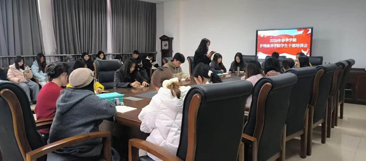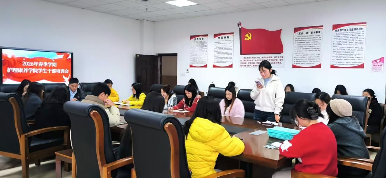 2026年3月8日,护理康养学院顺利开展2026年春季学期“学生干部培训”会议。本次会议以强化学生干部队伍建设、明确工作方向、提升履职能力为核心目标,进一步凝聚学生干部力量,推动学院学团工作高质量开展。护理康养学院党总支副书记邱科、院团委书记李姝环、学工办毛羽佳出席会议,2024级团委学生会全体干部参加此次培训。