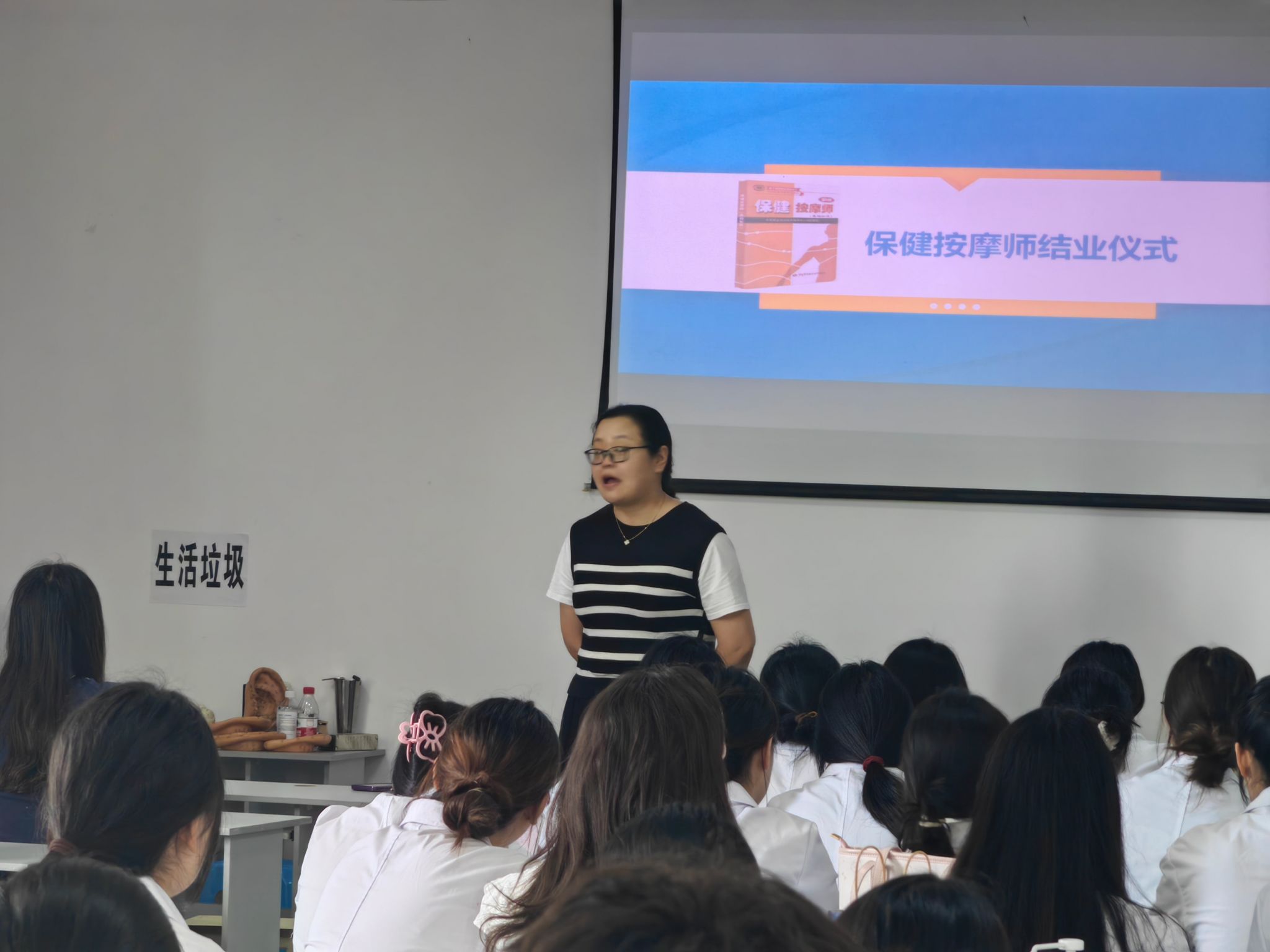 2025年5月28日,护理康养学院保健按摩师职业技能培训班结业仪式在一号实训楼A504举行。此次培训班旨在提升学员保健按摩专业技能,培养高素质康养人才,历经96学时的专业培训,学员们顺利完成学业。学院领导、培训教师代表及全体学员参加本次结业仪式。