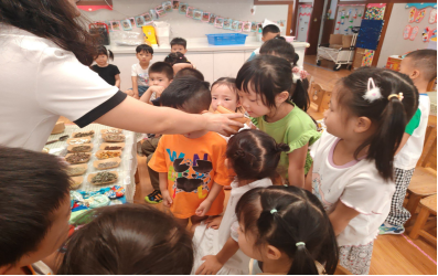 认识完药材后,小朋友们化身“小小药师”,在周老师的带领下,投入到香囊制作的乐趣中,大家按照称量药材、捣碎药材、分装粉末、创意封口的流程完成了自己专属的中药驱虫香囊,完成的香囊悬挂于教室、寝室窗边用于赶走蚊虫。