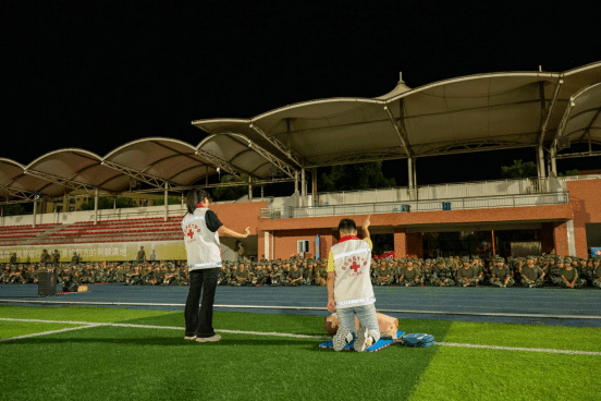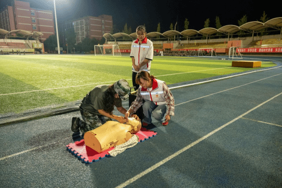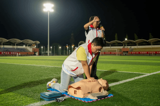 2025年9月23日晚20时,sunbet申搏官方网站主操场灯火通明,一场以"生命教育·救在身边"为主题的应急救护知识普及培训活动在此举行。本次活动由学院红十字会主办,旨在贯彻落实《健康中国2030规划纲要》,将红十字"人道、博爱、奉献"精神深度融入新生入学教育。护理康养学院党总支副书记吴丽虹、副院长张磊亲临指导,8名持证应急救护培训师带领20余名学生志愿者,为2025级全体新生带来一堂生动的生命教育课。