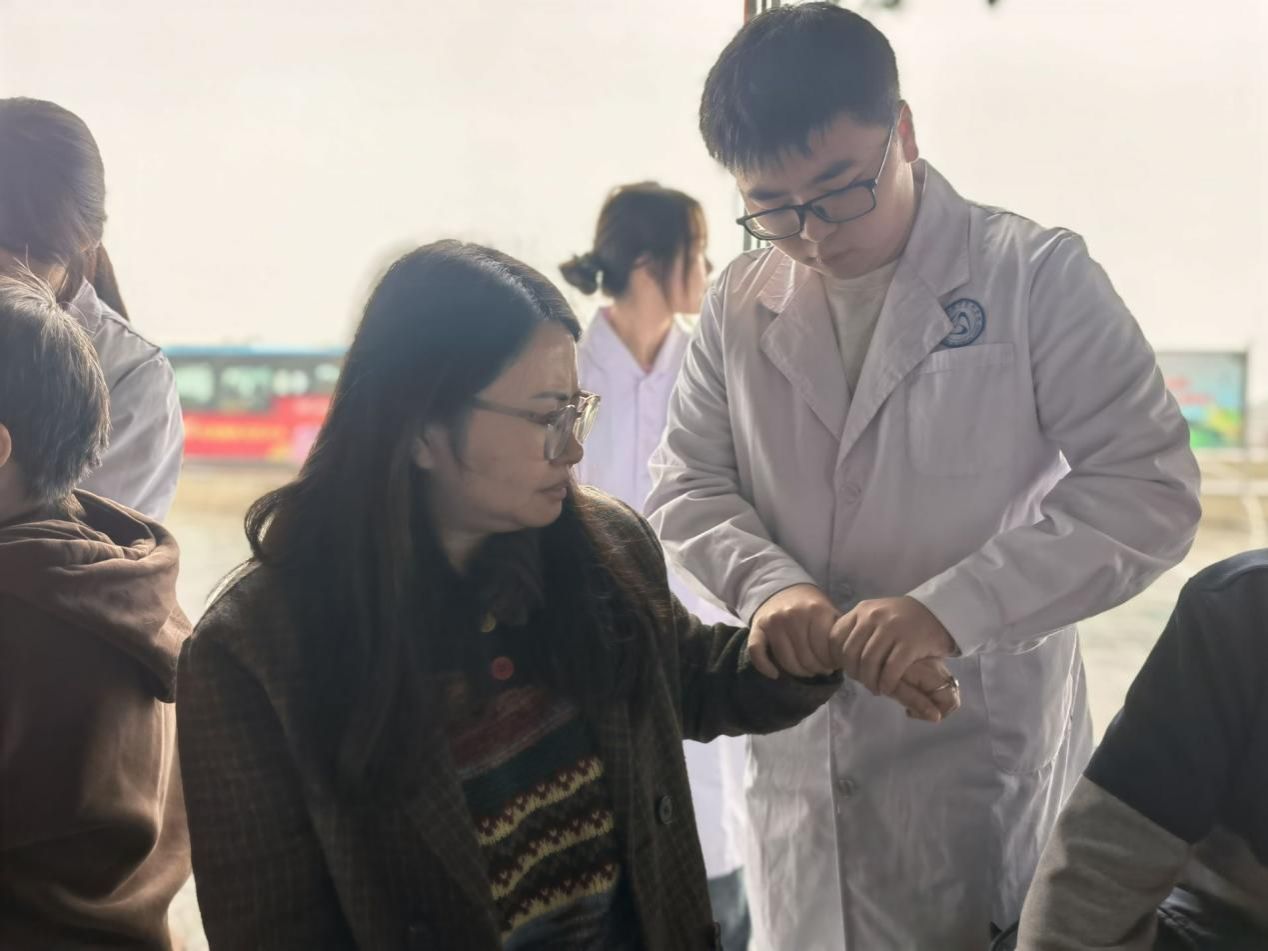活动当天,志愿者团队提前抵达沫若广场,在社长的统筹组织下有序搭建服务站点,通过悬挂主题横幅、现场讲解等方式,向居民清晰介绍义诊服务内容,吸引了不少居民驻足咨询。讲解过程中,社长结合居民认知特点,采用 “双手示范” 的直观方式,生动讲解穴位位置与保健作用,让中医知识不再 “晦涩难懂”;针对肩颈腰腿痛等常见问题,志愿者们运用揉捏、按推等专业手法,为居民舒缓肌肉紧张,缓解身体不适,专业的服务赢得现场一致认可。