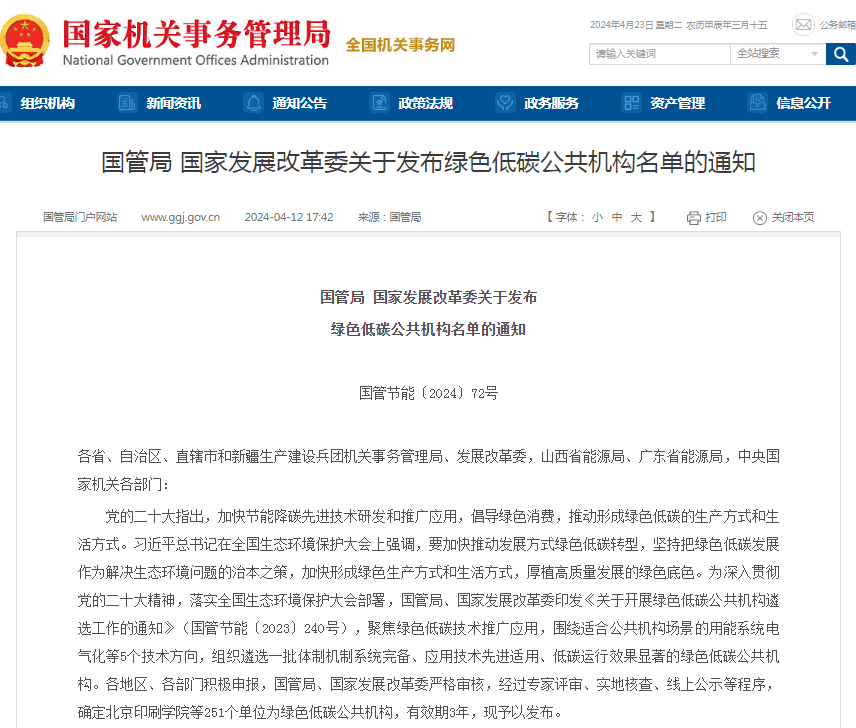 据悉,此次遴选旨在选拔一批体制机制系统完备、应用技术先进适用、低碳运行效果显著的绿色低碳公共机构,在节能减排、绿色出行、提高能源利用效率等方面起示范引领作用,影响带动其他公共机构转型。