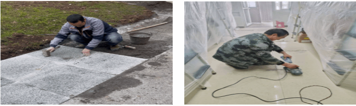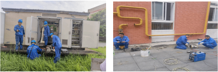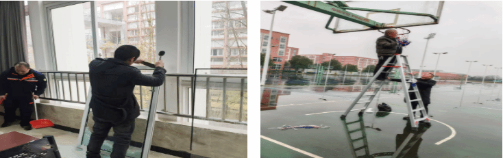 检查并维修维护校园剥落的墙面、破损的路面、脱落的瓷砖,组织对高压配电、电梯设备进行维护保养,联系燃气公司对学校燃气安全使用做全面检查,维修维护锈蚀的燃气管道。