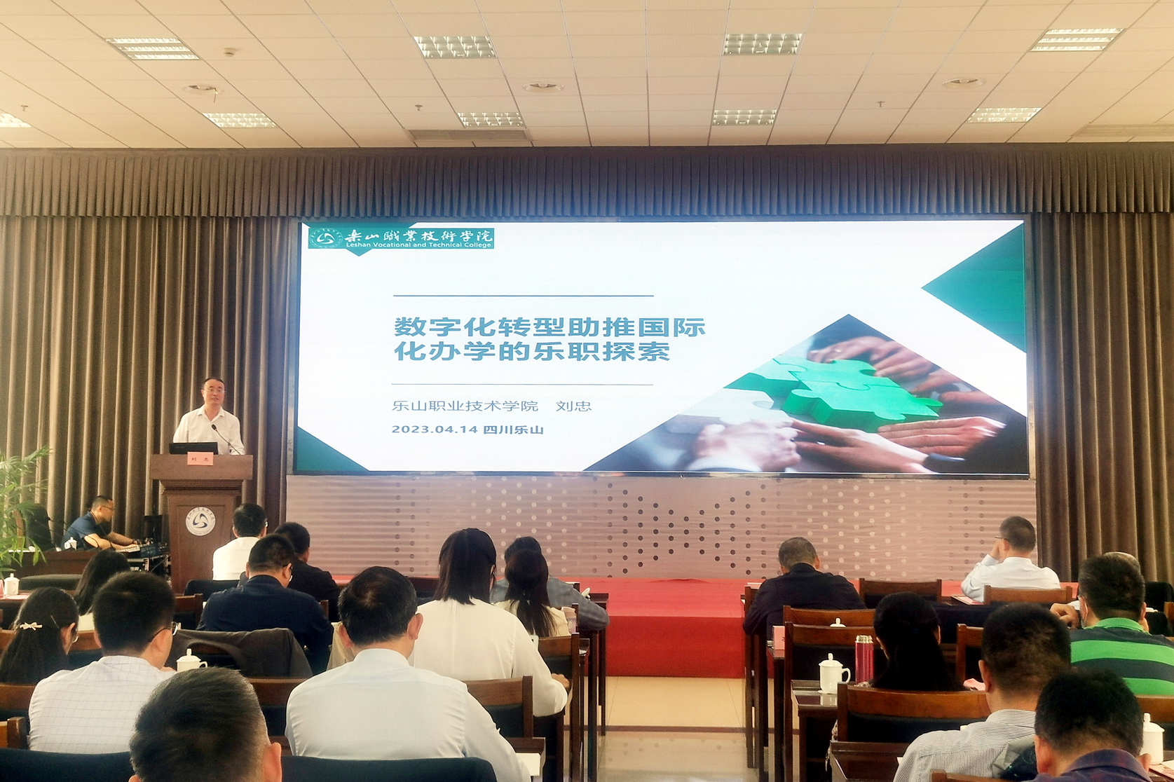在第二阶段的数字化转型主题论坛中,刘忠作《数字化转型助推国际化办学的乐职探索》的报告。