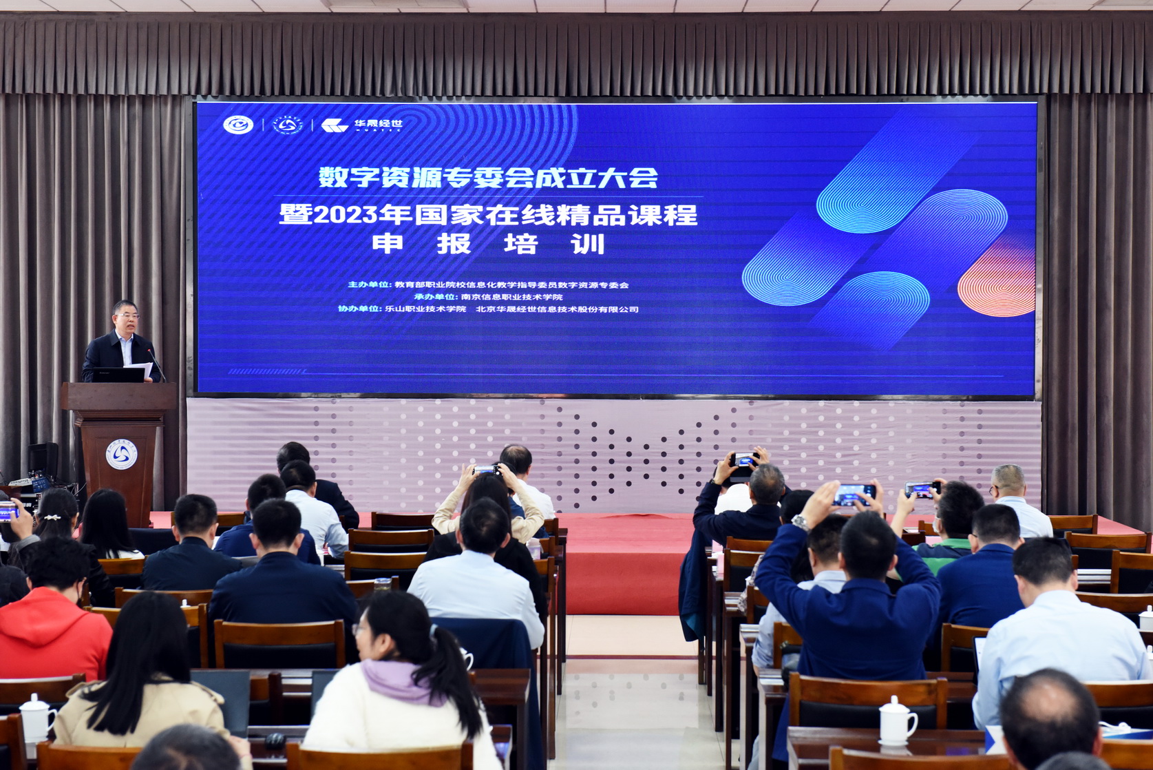 教育信息化的关键是教育资源的数字化,为推动教育资源数字化转型,提升数字资源的利用和推广,4月14日,教育部职业院校信息化教学指导委员会数字资源专委会成立大会暨2023年国家在线精品课程申报培训会在sunbet申搏官方网站隆重召开。教育部职业院校信息化教学指导委员会秘书长余永佳,四川省教育厅职教处副处长王华,sunbet申搏官方网站党委书记成定彬、院长刘忠,广东职业技术学院院长吴教育,南京信息职业技术学院副院长杜庆波等专委会成员以及来自全国各高校的在线课程建设负责人出席了会议。来自全国12个高职院校、6个资源中心的领导教师参加了本次会议。