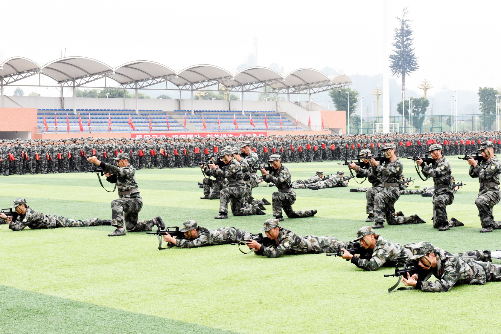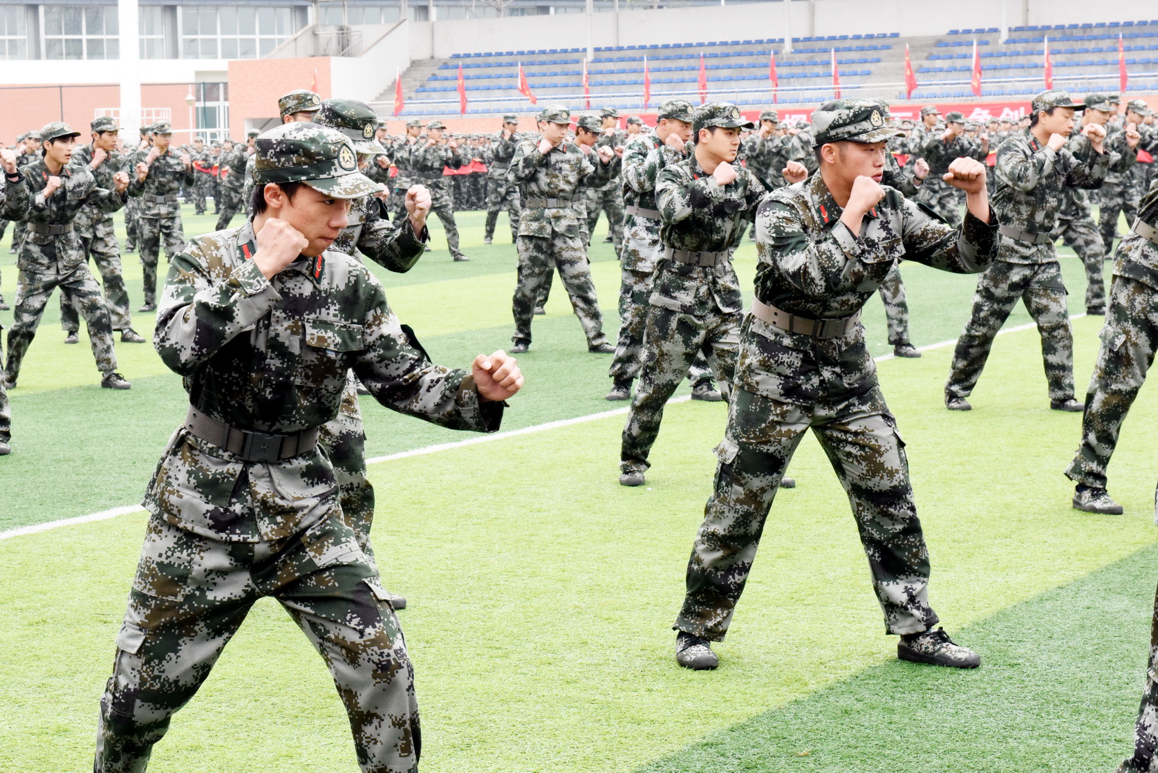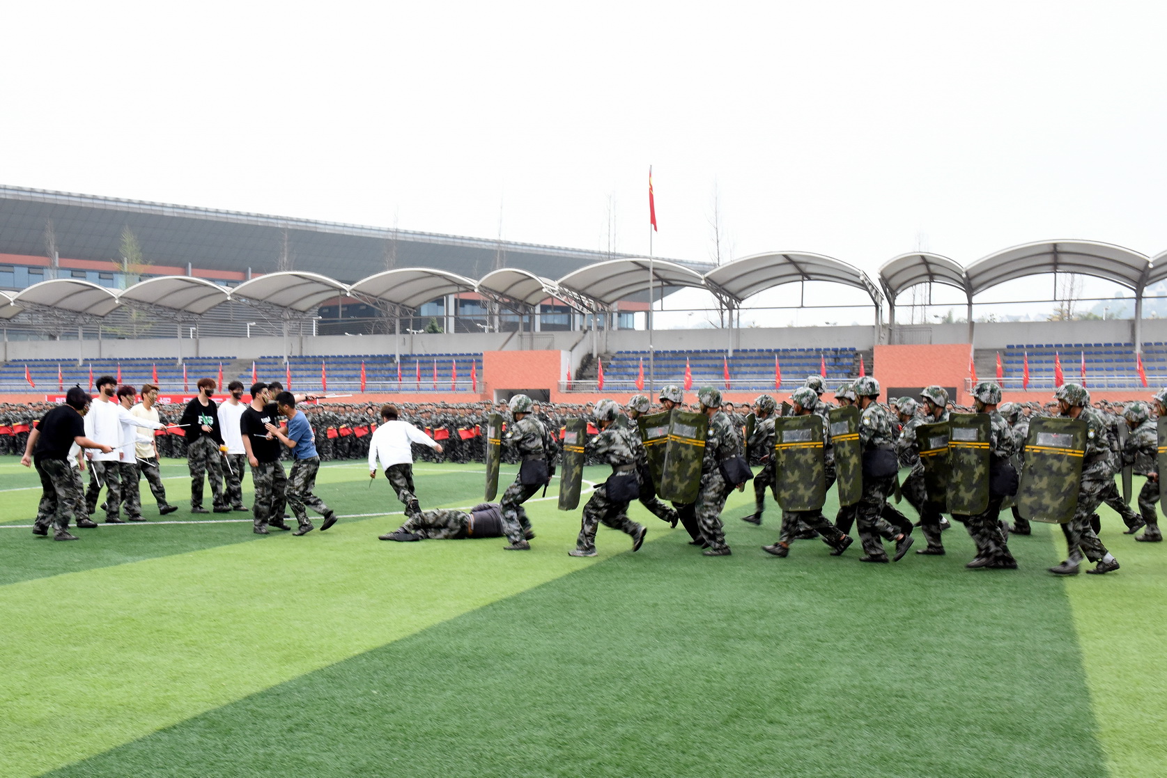 军训成果汇报还进行了分列式、战术、盾牌防暴及处突、擒敌拳、大型花式队列表演。