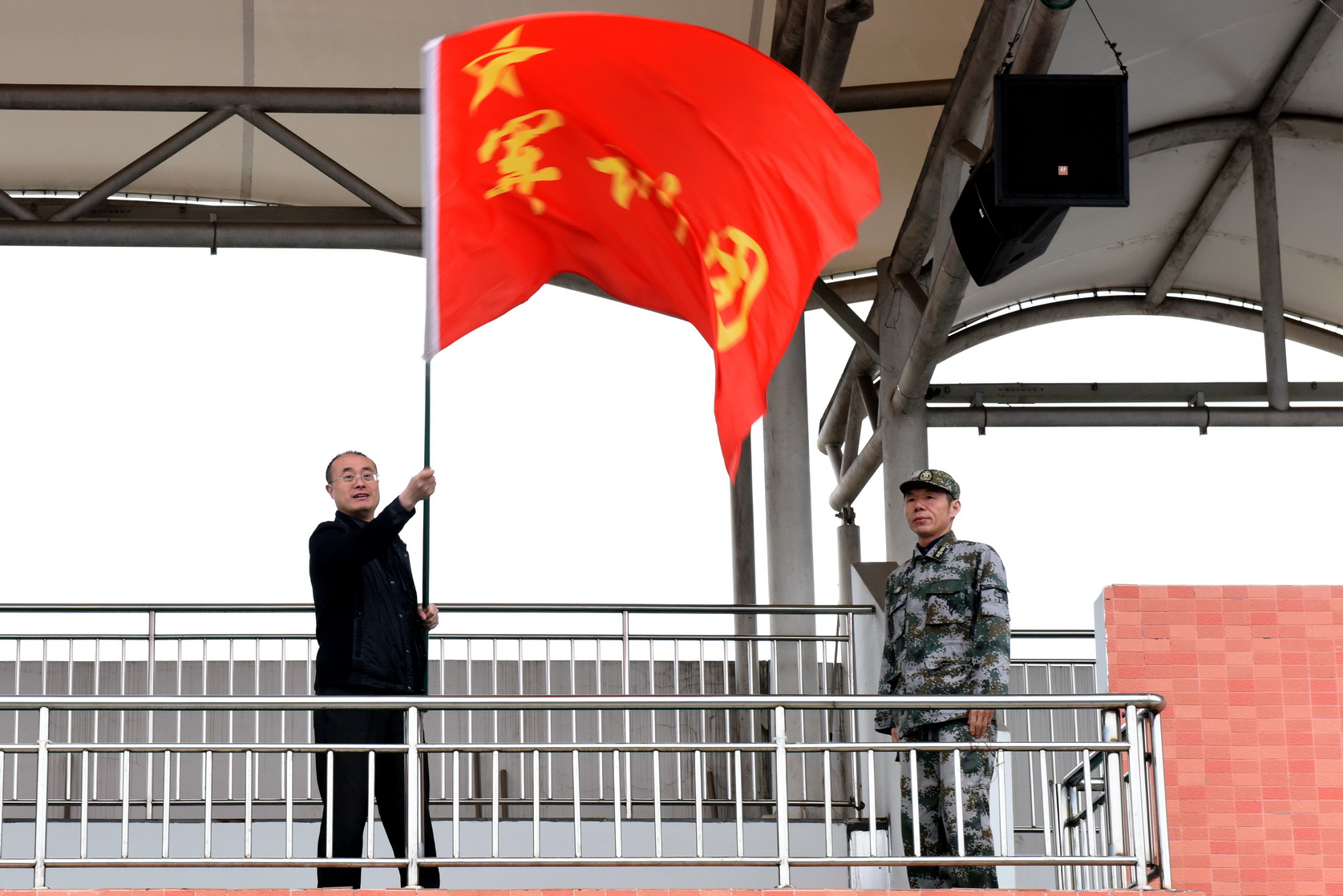 学院院长刘忠向军训团授旗,张进阳接旗并就本次军训进行了安排部署。