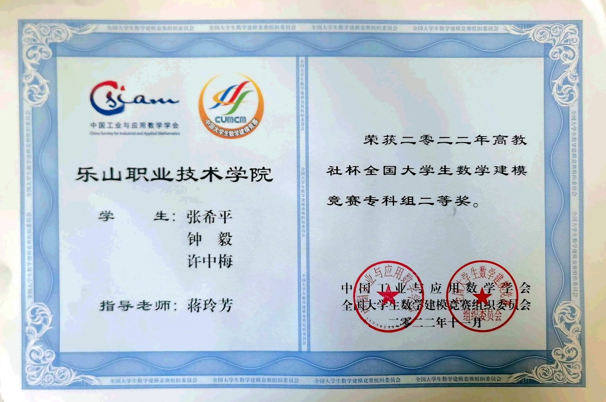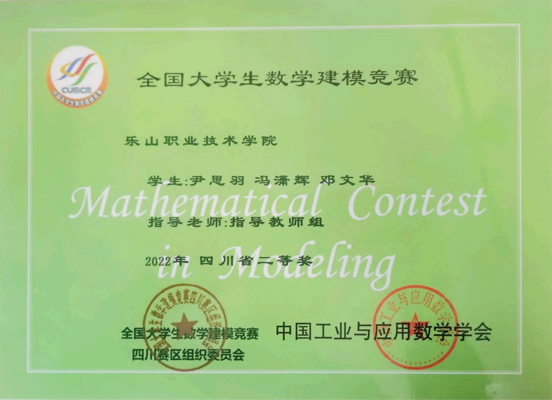 全国大学生数学建模竞赛创办于1992年,是首批列入“高校学科竞赛排行榜”的19项竞赛之一,也是教育部认可的56项高含金量的大学生学科竞赛之一。近日,2022年全国大学生数学建模获奖名单公布,我院学生取得历史性佳绩。在指导组教师们精心指导下,参赛学生们团结合作、努力备赛,所有参赛队伍全部获奖,共获全国二等奖一项,四川省一等奖两项、二等奖一项、三等奖两项。
