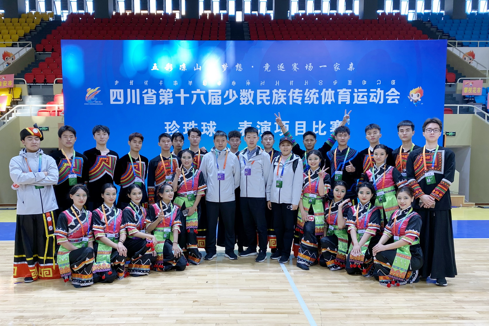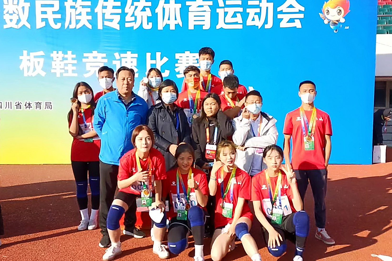 本届运动会,学院共选派教练员运动员39人,运动员由彝、藏、羌、哈尼、汉族学生组成。参赛队员克服重重困难,在省民运会上精心呈现《尔布且》《觉比恰比》和《恰尔波》3个表演项目及板鞋竞技各项目比赛。最终,表演节目《尔布且》荣获二等奖,《觉比恰比》《恰尔波》获三等奖,板鞋竞速女子2×100接力赛获得二等奖,男女混合4×100接力赛获得三等奖一系列成绩,展现了sunbet申搏官方网站少数民族学生的风采,圆满完成了乐山市民宗局、旅体委下达给我院的目标任务,为学院争得了荣誉。