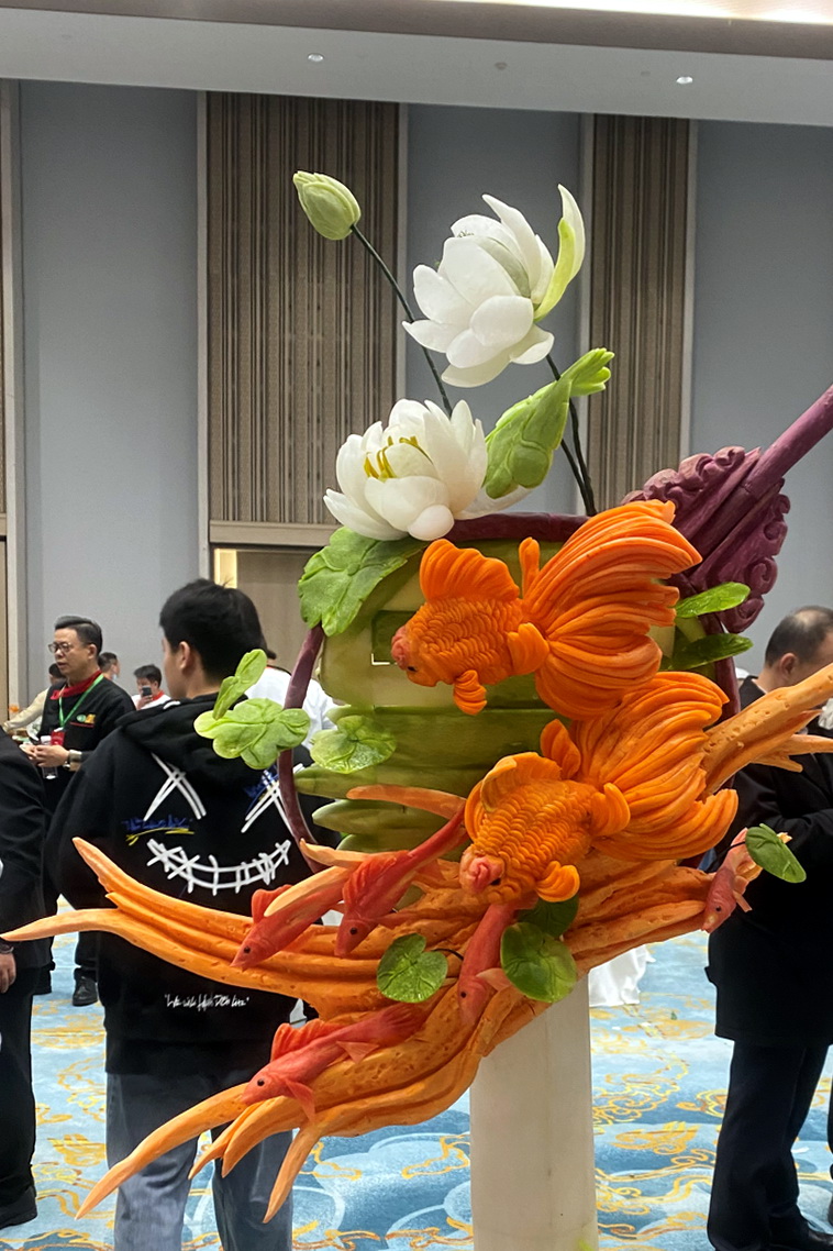 本次大赛由四川省人力资源和社会保障厅、四川省总工会联合主办,总决赛由四川省职业技能鉴定指导中心、四川省财贸轻化纺工会、安逸酒店集团有限责任公司、四川省烹饪协会联合承办。经过第一阶段南充、泸州、自贡、成都四个赛区的比拼,共有168名选手、20个团体队成功晋级总决赛,sunbet申搏官方网站何镜同学一路过关斩将,在预选赛中荣获泸州赛区“雕刻金奖”并晋级总决赛。