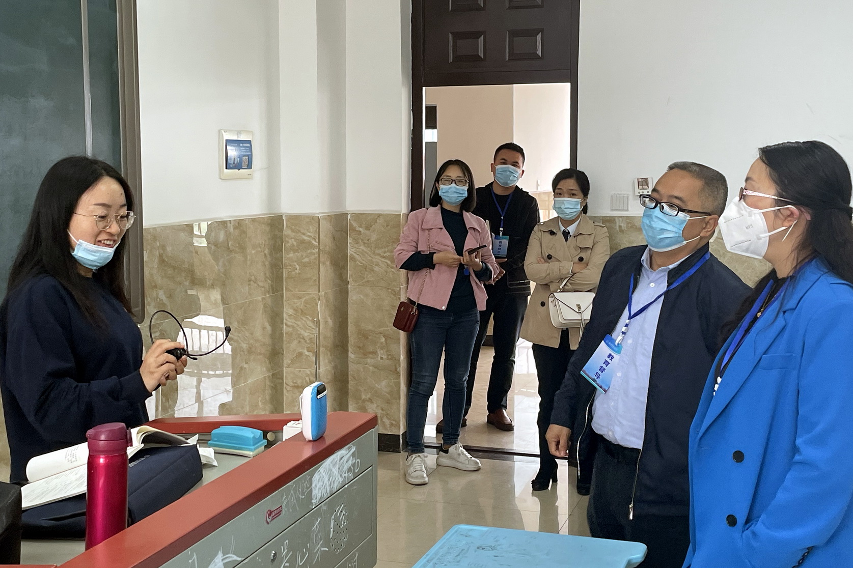 10月10日是学院2022年秋季学期学生到校开课的第一天,为确保各项教育教学工作正常有序开展,由院长刘忠,党委副书记陈芝海,副院长陈元进、张学河、封家福、周芹带队,相关部门负责人组成联合督查小组,对学生到校开课第一天的教育教学情况进行了专项督查。