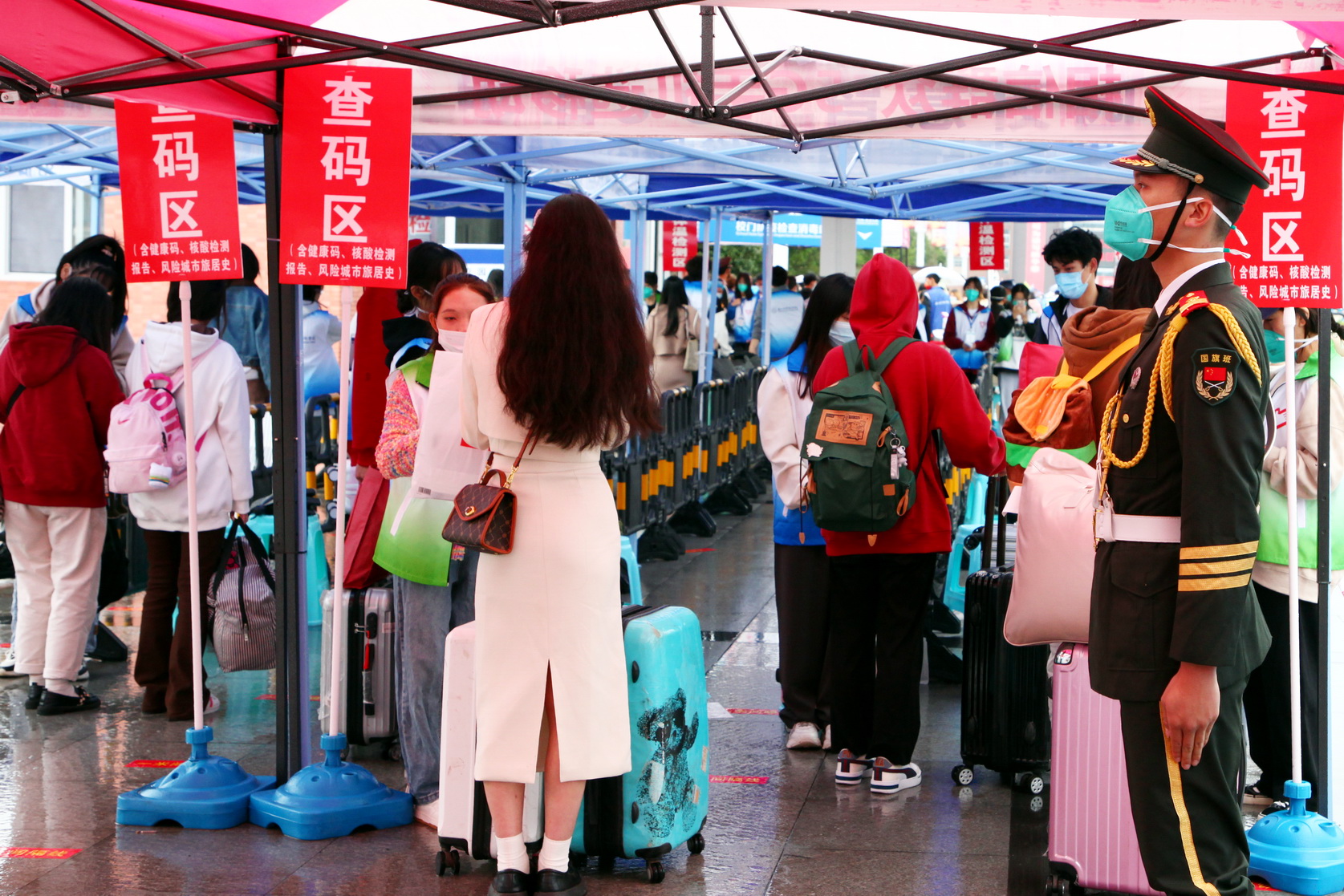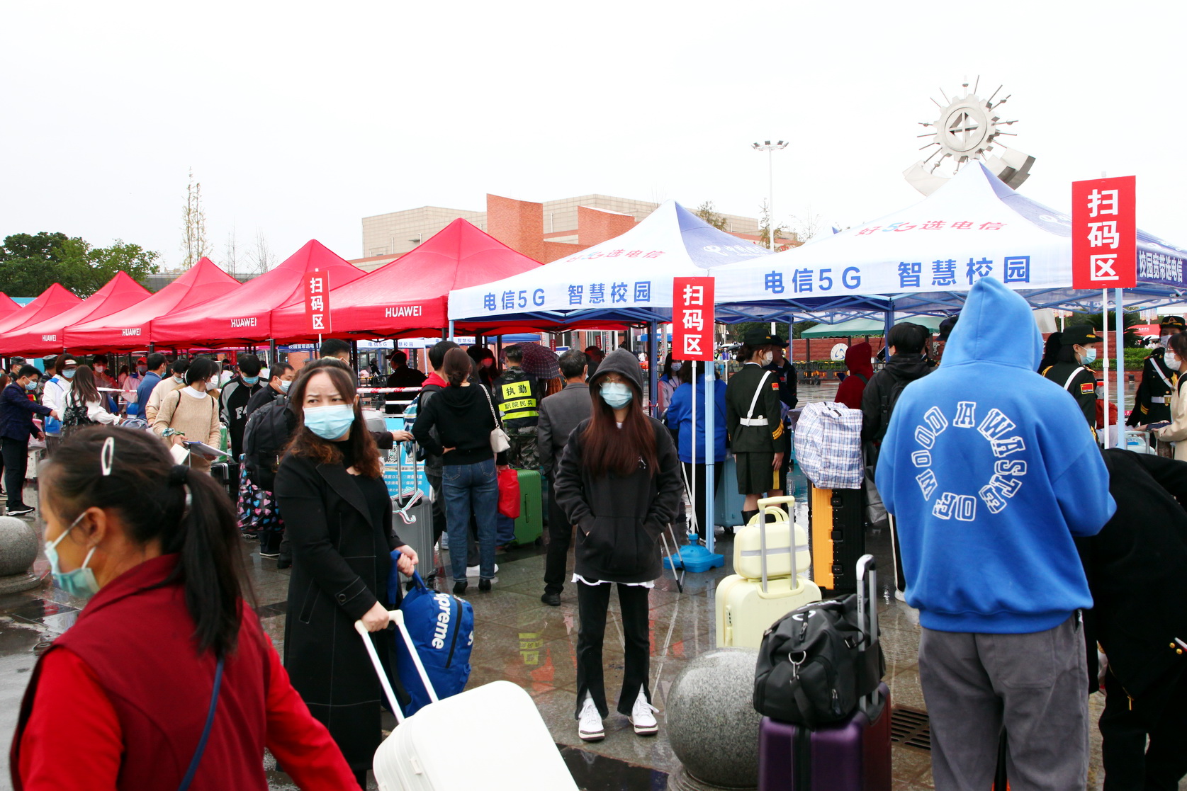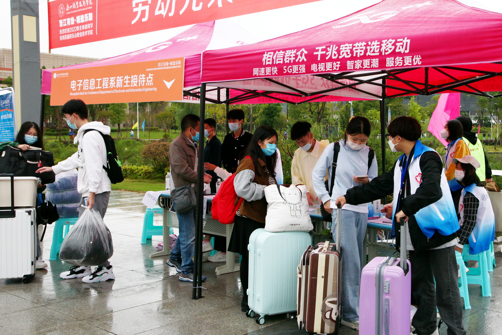 为方便学生到校及行李搬运,学院在高铁站、旅游车站、联运车站、中心站设立了接待处,开通了新生入学专用大巴,接送新生和家长。新生经过行李消毒、安全码查验、身份核实、体温检测合格后方能入校。各系部的学生志愿者在大门入口处接过新生们手中沉重的行李,送到学院在校门内设立的行李寄存处,学院安排的摆渡车再将新生的行李送到各寝室楼下。志愿者带领新同学办理入学手续、领取一卡通、导航寝室、解答新同学的疑问,给新同学带去温暖和关怀。