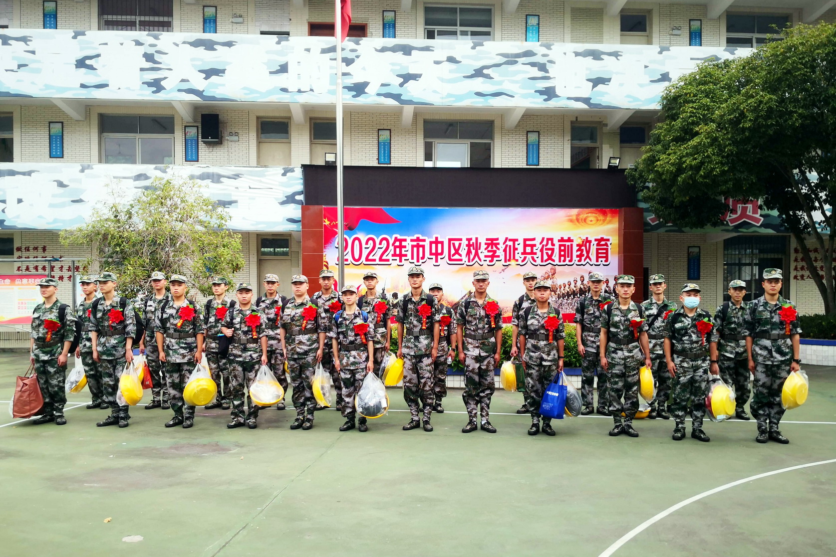 金桂飘香、秋风送爽,在这个硕果累累的季节,学院广大学子响应祖国号召,携笔从戎。经过乐山市市中区人民武装部的层层选拔后,23名学生目前进入役前为期10天的训练教育阶段,将于近期奔赴部队履行保卫祖国的重任。