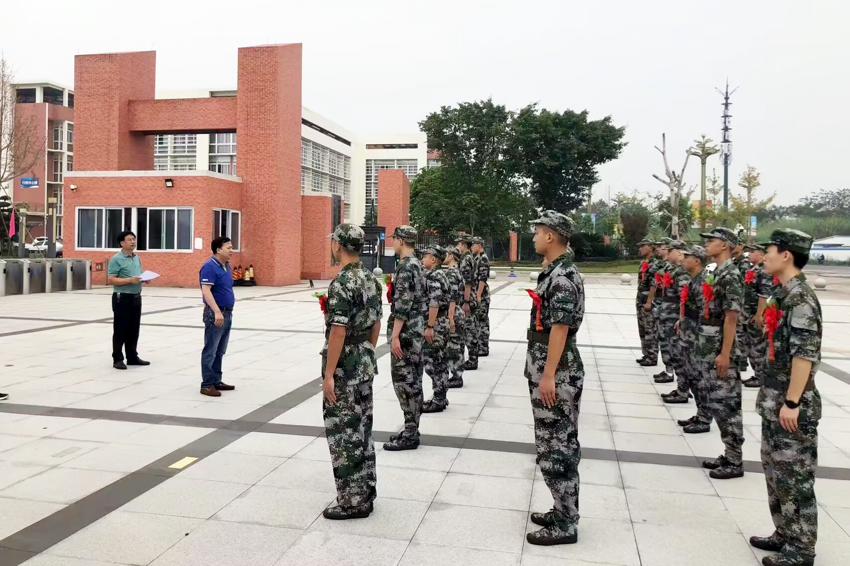 9月13日上午,学院为23名从乐山市中区应征入伍的学生举行了欢送仪式,学院副院长陈元进及武装部老师为入伍学生佩戴光荣花,欢送仪式由学院武装部部长叶宏光主持。