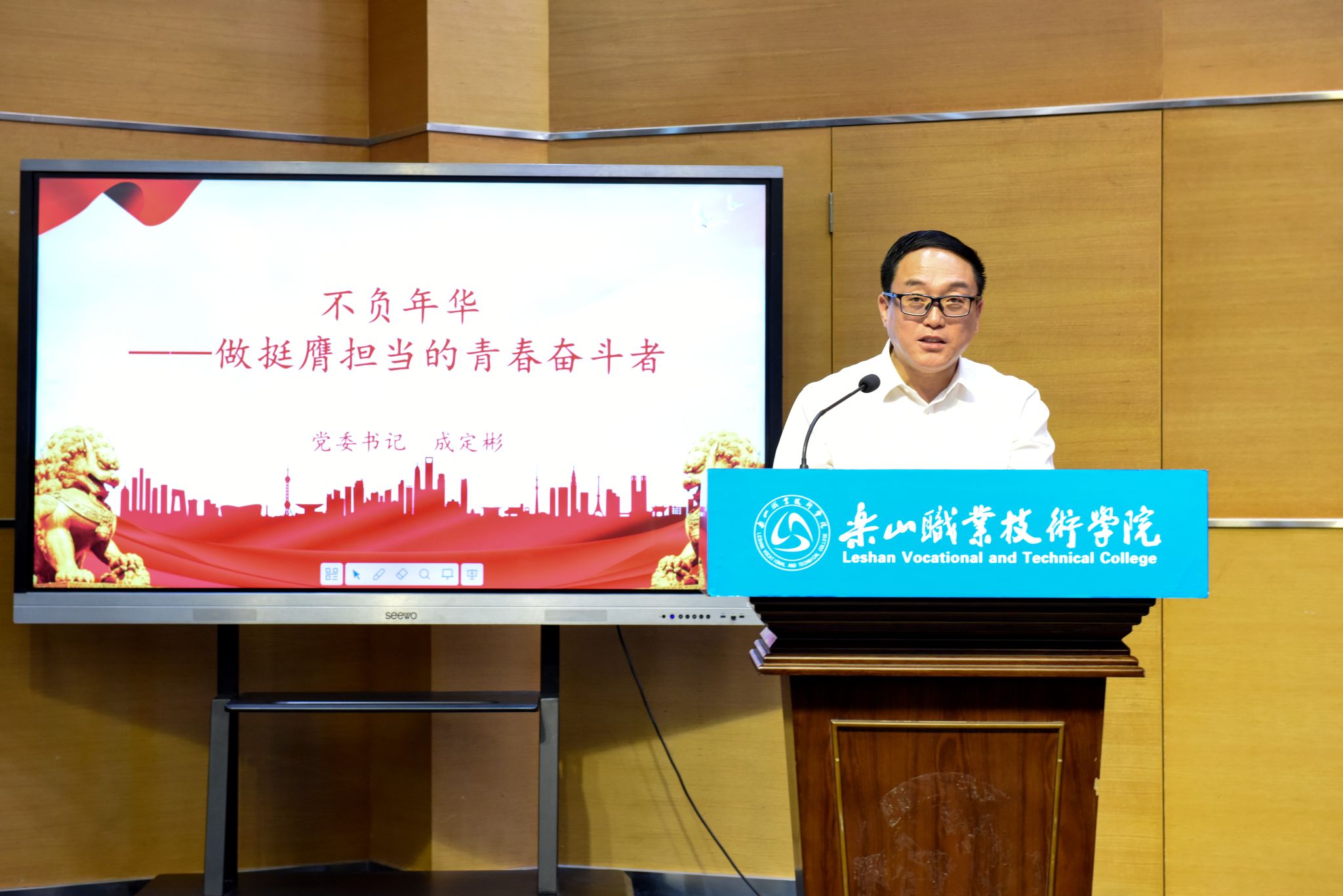 学校党委书记成定彬讲话并上主题团课《不负年华——做挺膺担当的青春奋斗者》。他向获得荣誉的集体和个人表示祝贺,并勉励全校青年弘扬五四精神,坚定理想信念,练就过硬本领。