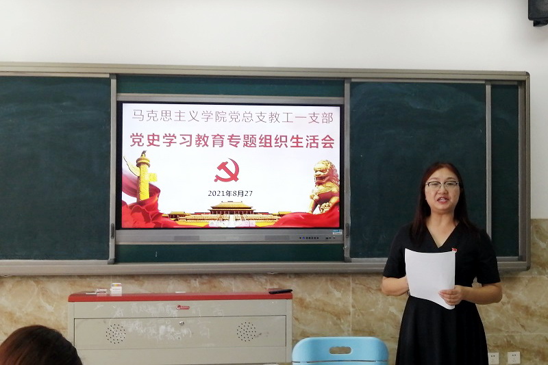 根据学院关于召开党史学习教育专题组织生活会的安排,2021年8月27日下午2点,马克思主义学院党总支教工一支部在教学楼1A409教室召开党史学习教育专题组织生活会。学院党委委员、副院长鲍学东、马院党总支书记郑平出席会议。一支部全体党员同志参加了会议,会议由党支部书记李晓勤主持。