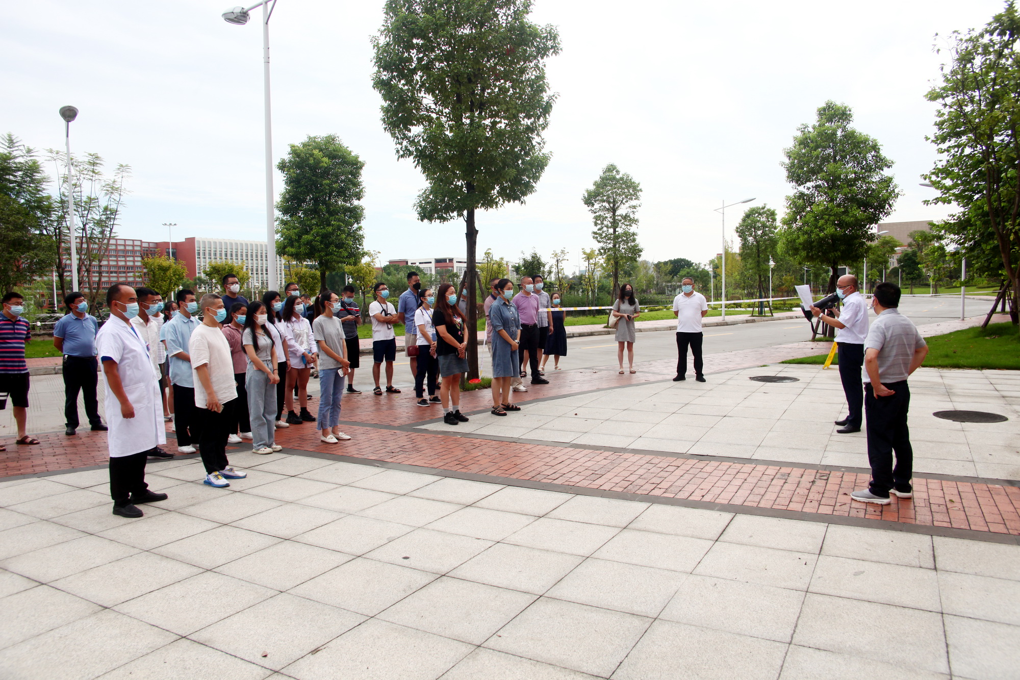 针对两个假设场景,学工部、保卫处、后勤处、教务处、宣传部等多部门以及相关系(部)通力配合,立即按照各防控小组要求,启动应急响应,逐项落实防控措施,顺利将两个假设场景中出现的问题妥善处置。