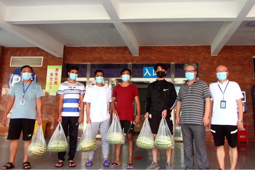 在学生宿舍,陈芝海对留学生表达了学院对他们的关怀,送去西瓜,并了解学生宿舍的防暑、防疫等情况。