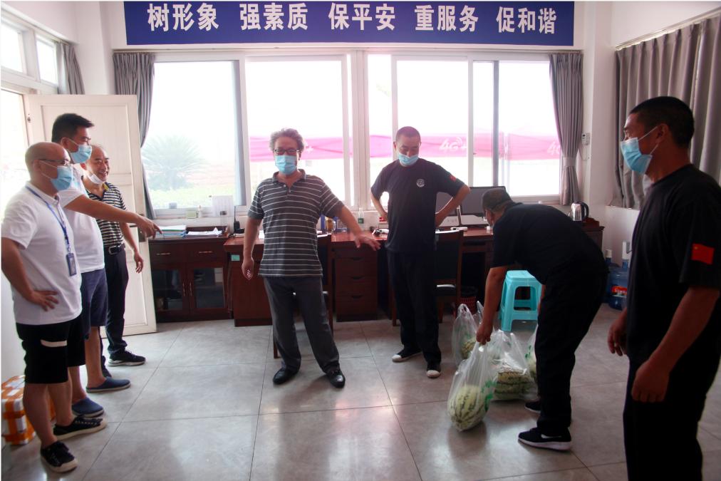 在门岗、奥校游校基地和附属医院,每到一处,陈芝海都代表学院党政送去西瓜,并与坚守在一线的教职工亲切交谈,对他们不惧高温、忠于职守、无私奉献的精神给予了肯定。同时,希望他们切实做好自身防护,合理安排工作任务,确保身体健康。
