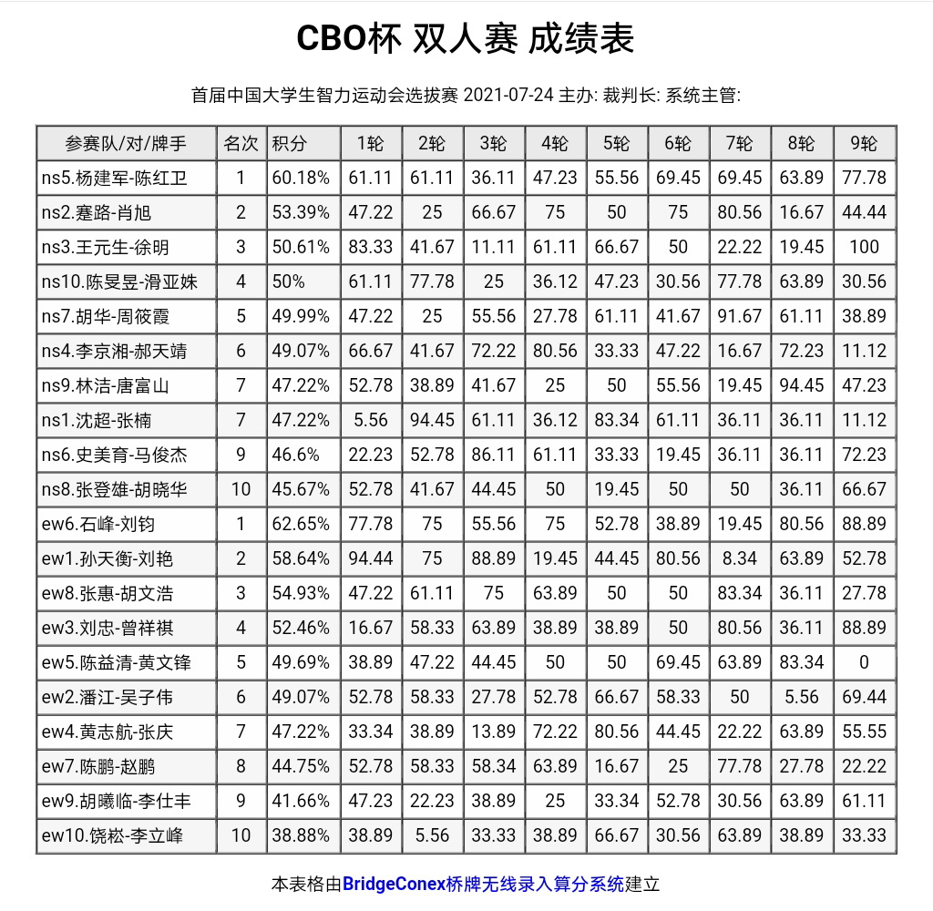 7月25日,2021年中国大学生桥牌锦标赛正在紧张地进行中,学生们都在酣战之中,领队和教练们此时反而处于空闲状态,由中国桥牌在线赞助举办了小型的“CBO杯高校教师交流赛”。