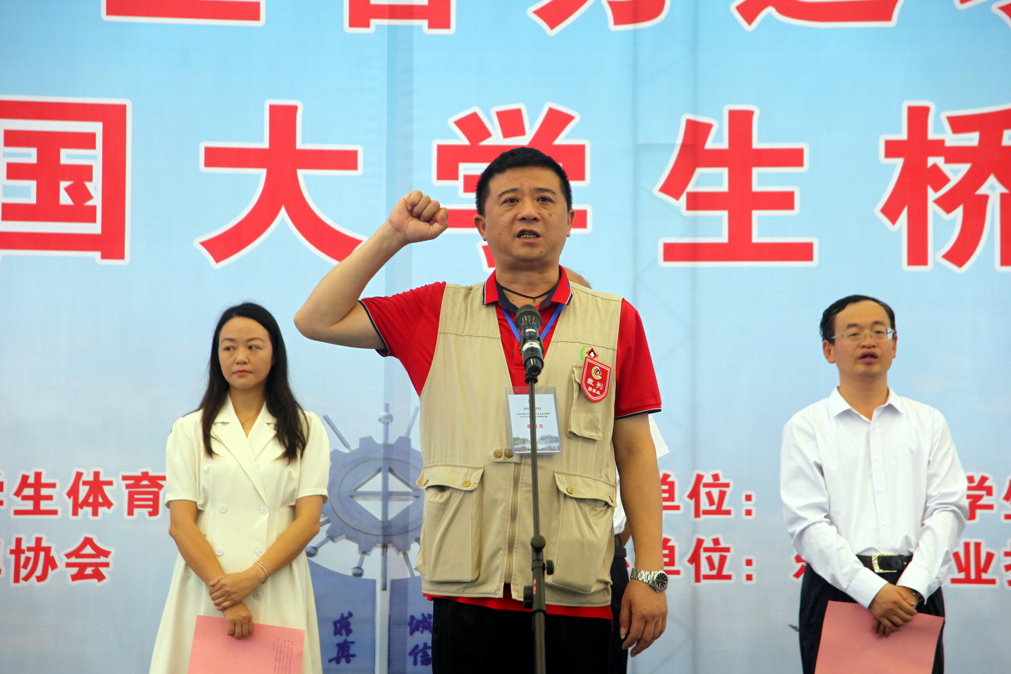 最后,由中国大学生体育协会桥牌分会副主席蹇路宣布开赛。