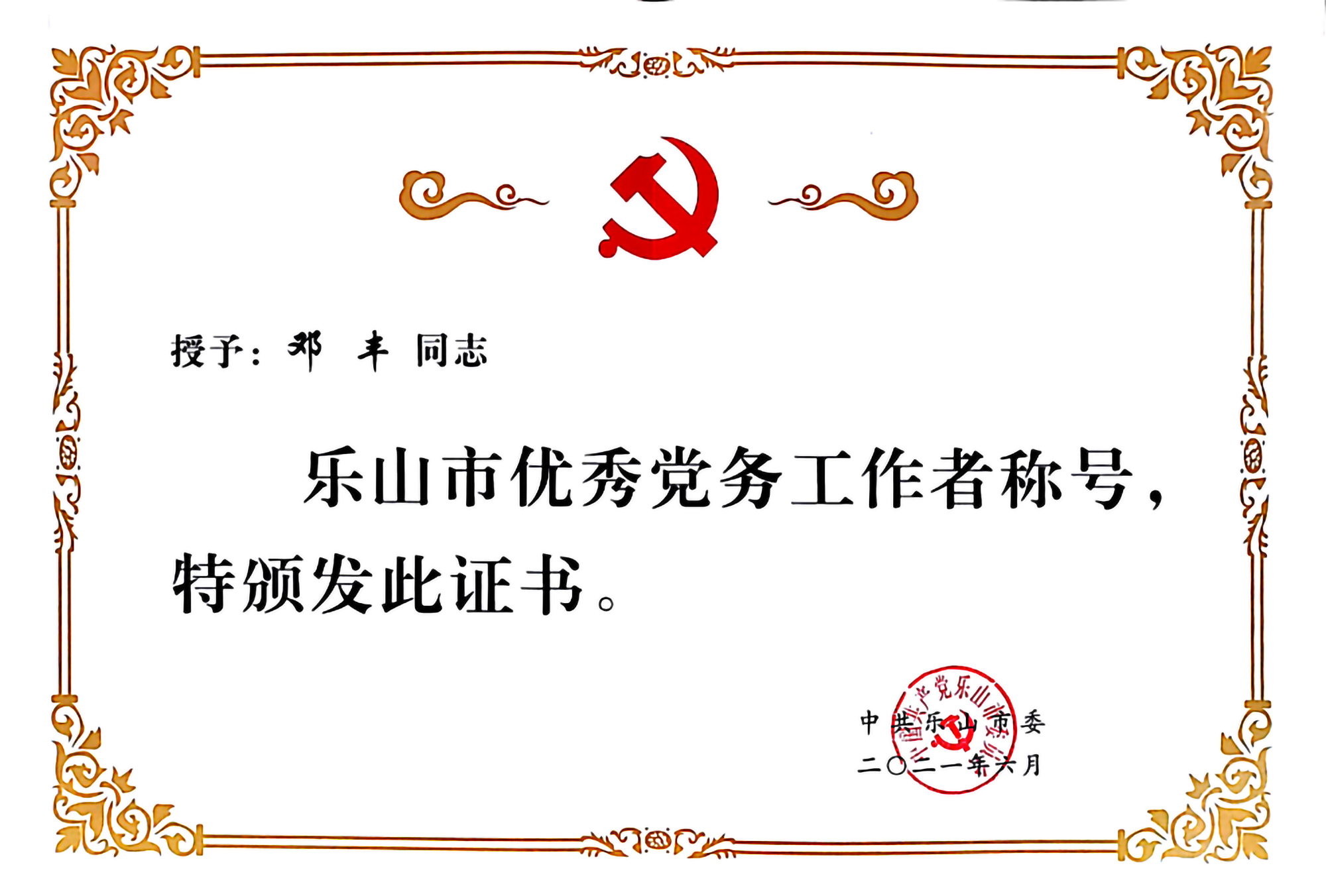 6月29日上午,乐山市“两优一先”表彰大会隆重举行。会议共表彰了100名优秀共产党员,50名优秀党务工作者,50个先进基层党组织。我院新能源系党总支专职副书记、教工一党支部书记邓丰同志荣获“乐山市优秀党务工作者”称号,药学系教工二党支部荣获“乐山市先进基层党组织”称号。
