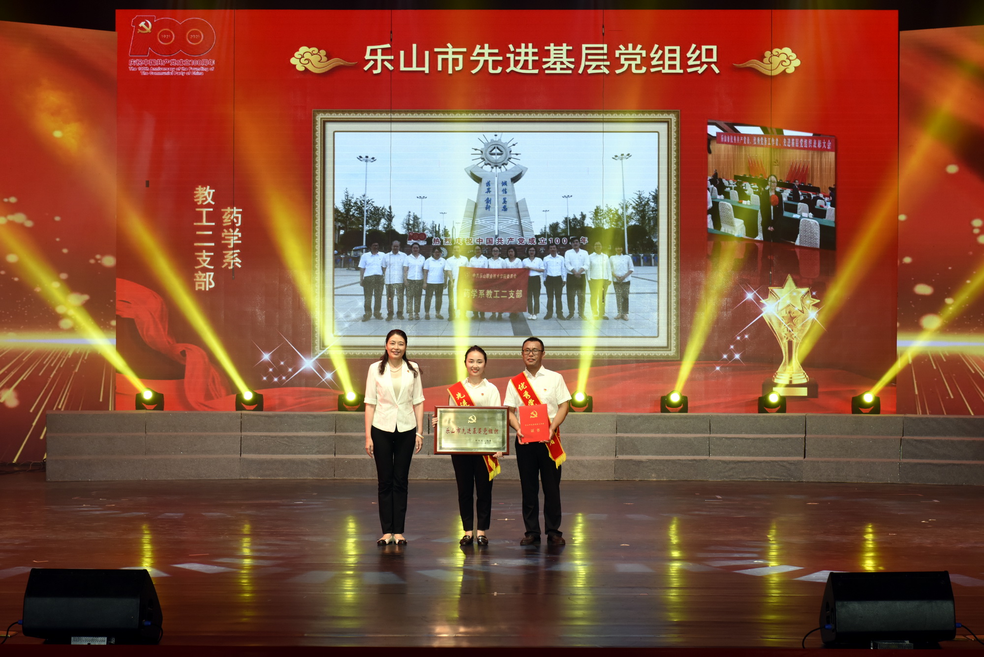 6月30日既是歌咏活动,也是“七一”表彰大会。会上,学院党委对基础公共课程部党总支教工一支部、财经管理系党总支学生支部、药学系党总支教工一支部、新能源工程系党总支教工二支部等4个2020年度院级先进基层党组织,王竹、李贵明、赵鑫、王颖等29名2020年度院级优秀共产党员,邓开、吴丽虹、王倩等15名2020年度院级优秀党务工作者以及乐山市优秀党务工作者邓丰、乐山市先进基层党组织药学系党总支教工二支部予以表扬。学院党委领导班子为2020年度院级优秀共产党员代表、优秀党务工作者代表颁奖。学院党委书记易群为2020年度院级先进基层党组织颁奖,为乐山市优秀党务工作者邓丰、乐山市先进基层党组织代表(药学系党总支教工二支部书记徐娇)表示祝贺,为学院4位“光荣在党50年”的老党员代表林永庆、彭树森、陈兴武、廖信元颁发纪念章。