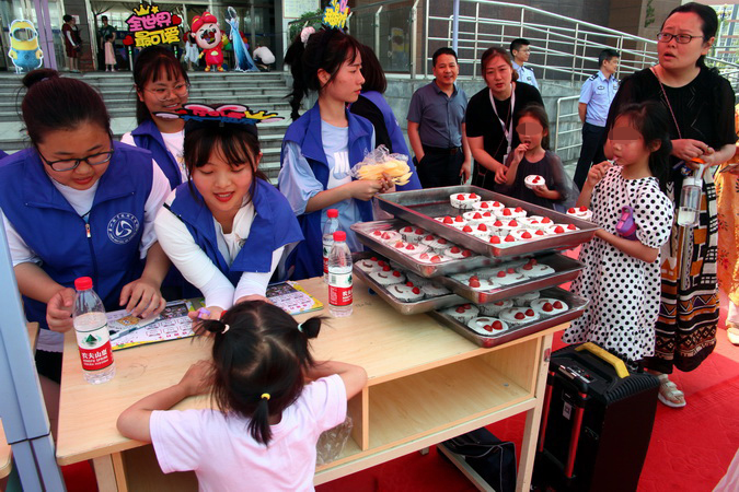 午后的校园艳阳高照,偏高的气温却丝毫没有阻挡教职工和小朋友的热情,1300多个色彩斑斓气球和卡通图案随处可见,广播站中难得地播放起儿歌,将喜庆的气氛早早便烘托出来。