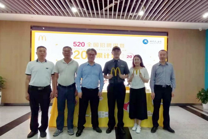 2021年5月20日,在四川省人才交流中心举办麦当劳2021年“520全国招聘周”启动仪式,学院党委副书记陈芝海,财经管理系主任邵其会、系总支副书记(主持总支工作)易新忠、系副主任何瑞以及系现代学徒制相关师生应邀参加。